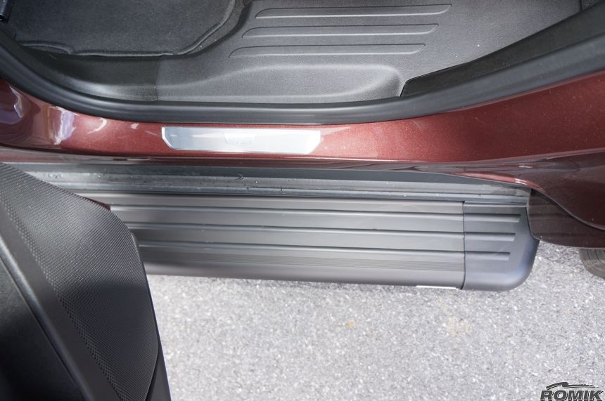 Romik RB2 Luxury Side Step Series are the newest European design from the Romik labs. Upgrade your vehicle’s function and fashion in one easy Step RB2 running boards are made from aircraft quality triple wall aluminum extrusion that are twice as thick as our competitors and are complemented by black end caps with grip assurance technology. With safety and style in mind RB2 will set your vehicle apart from the rest. The Romik RB2 compliments the lines of your vehicle and gives the occupants sure footing. Sold in pairs, the Romik RB2 Running Boards include vehicle specific mounting brackets and hardware. RB2 running boards are backed by a limited lifetime warranty. FITMENT NOTES: Will not fit with mudflaps
