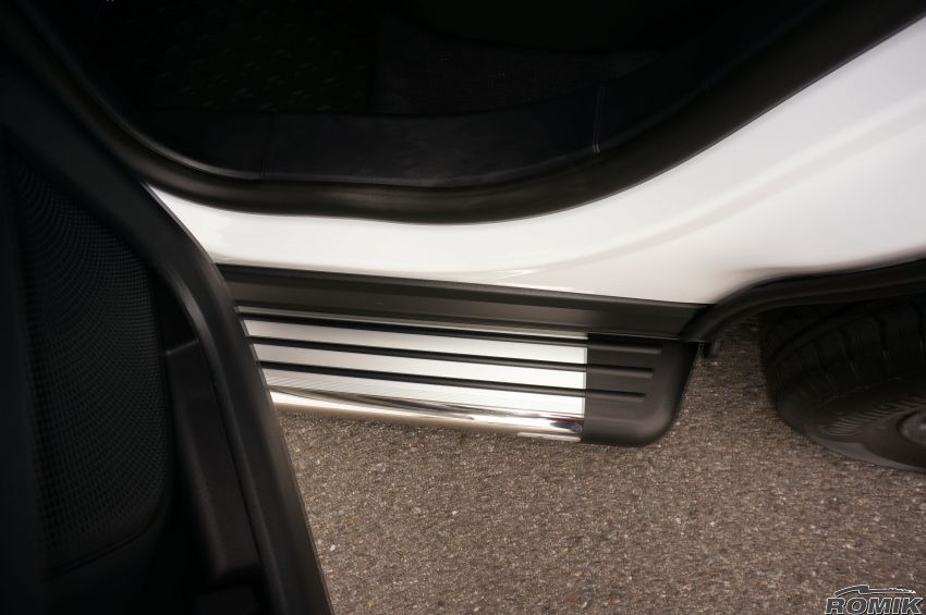 Romik RB2 Luxury Side Step Series are the newest European design from the Romik labs. Upgrade your vehicle’s function and fashion in one easy Step RB2 running boards are made from aircraft quality triple wall aluminum extrusion that are twice as thick as our competitors and are complemented by black end caps with grip assurance technology. With safety and style in mind RB2 will set your vehicle apart from the rest. The Romik RB2 compliments the lines of your vehicle and gives the occupants sure footing. Sold in pairs, the Romik RB2 Running Boards include vehicle specific mounting brackets and hardware. RB2 running boards are backed by a limited lifetime warranty.