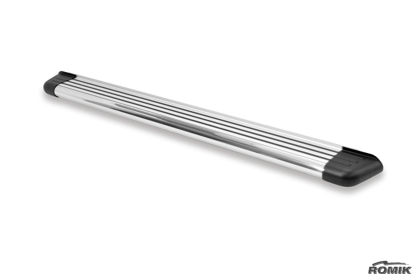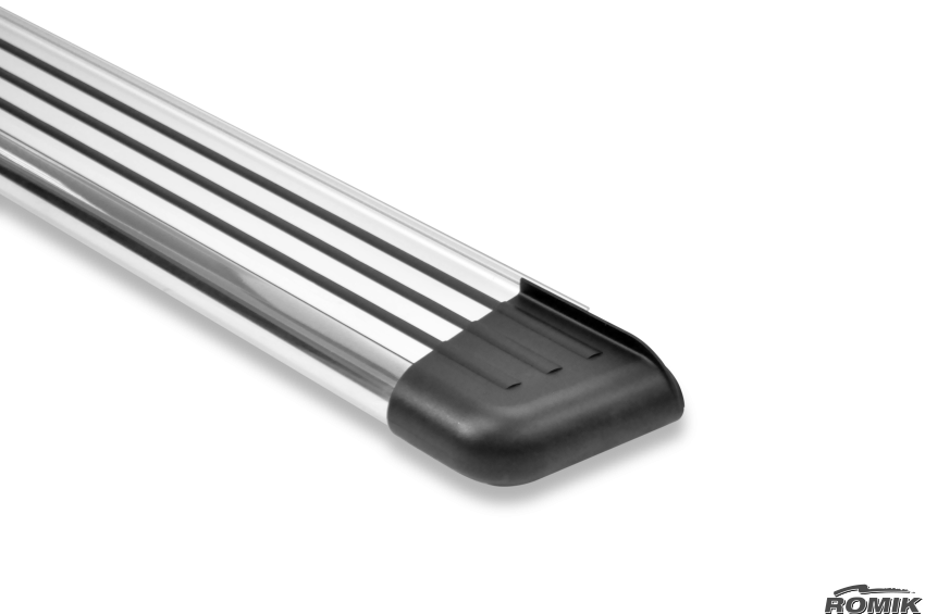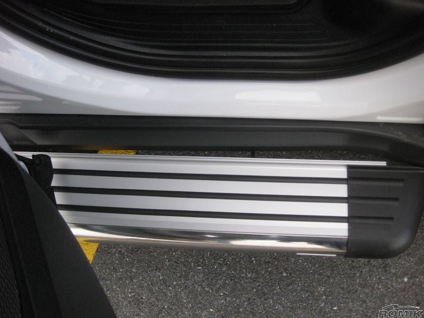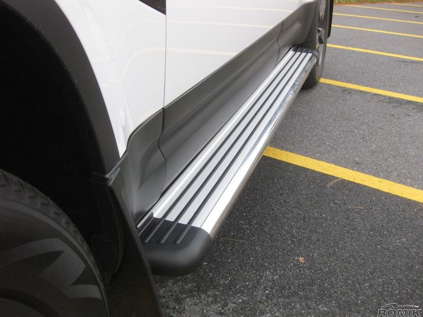 Romik RB2 Luxury Side Step Series are the newest European design from the Romik labs. Upgrade your vehicle’s function and fashion in one easy Step RB2 running boards are made from aircraft quality triple wall aluminum extrusion that are twice as thick as our competitors and are complemented by black end caps with grip assurance technology. With safety and style in mind RB2 will set your vehicle apart from the rest. The Romik RB2 compliments the lines of your vehicle and gives the occupants sure footing. Sold in pairs, the Romik RB2 Running Boards include vehicle specific mounting brackets and hardware. RB2 running boards are backed by a limited lifetime warranty. FITMENT NOTES: Requires undercarriage panel trimming Visible gap due to body design