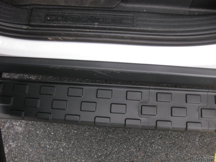 Romik's REC Running Boards are the newest European design from the Romik labs. Upgrade your vehicle’s function and fashion in one easy Step; Romik REC running boards are made from aircraft quality aluminum extrusion and are complemented by black end caps with a non-skid surface for sure footing. With safety and style in mind REC will set your vehicle apart from the rest. The Romik REC compliments the lines of your vehicle and gives the occupants sure footing. Sold in pairs, the Romik REC Running Boards include vehicle specific mounting brackets and hardware. REC running boards are backed by a 5-year warranty. FITMENT NOTES: Visible gap due to body design