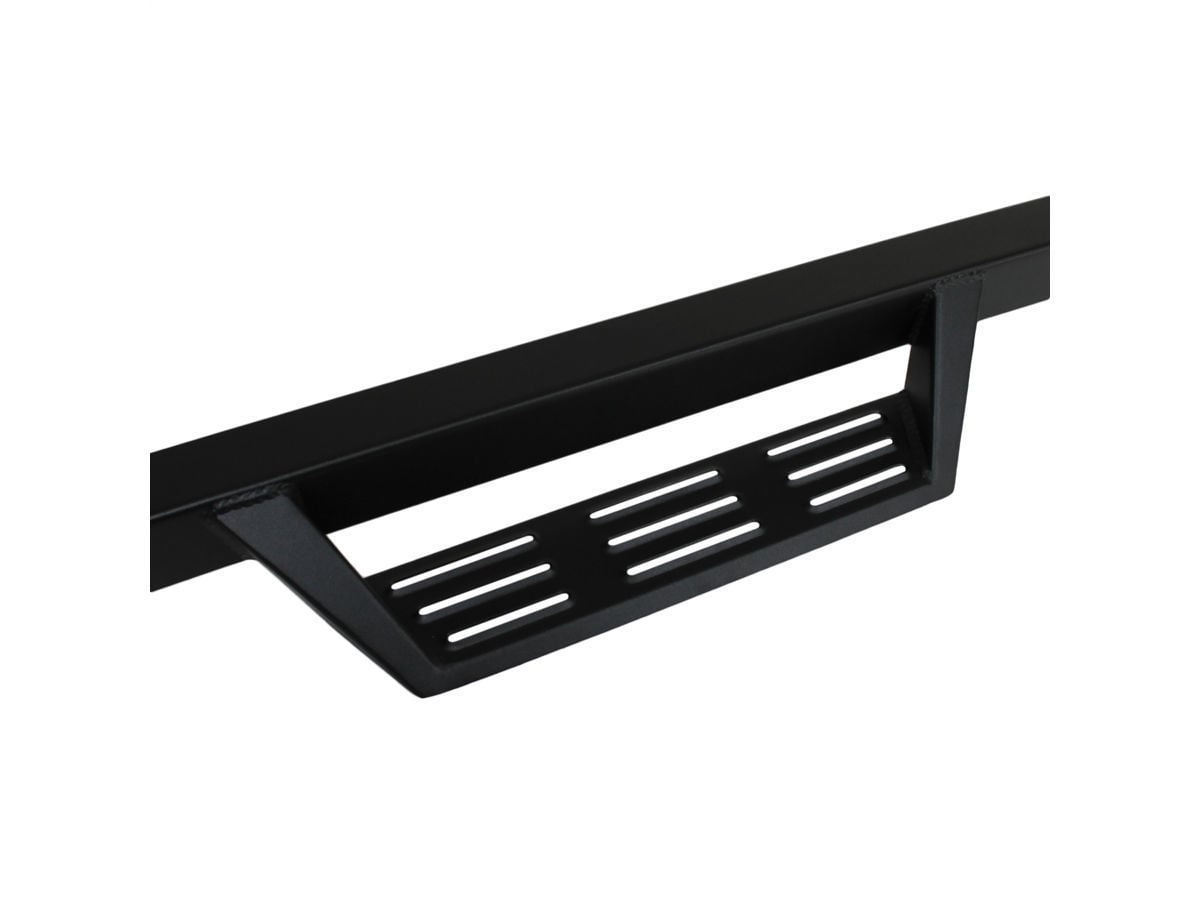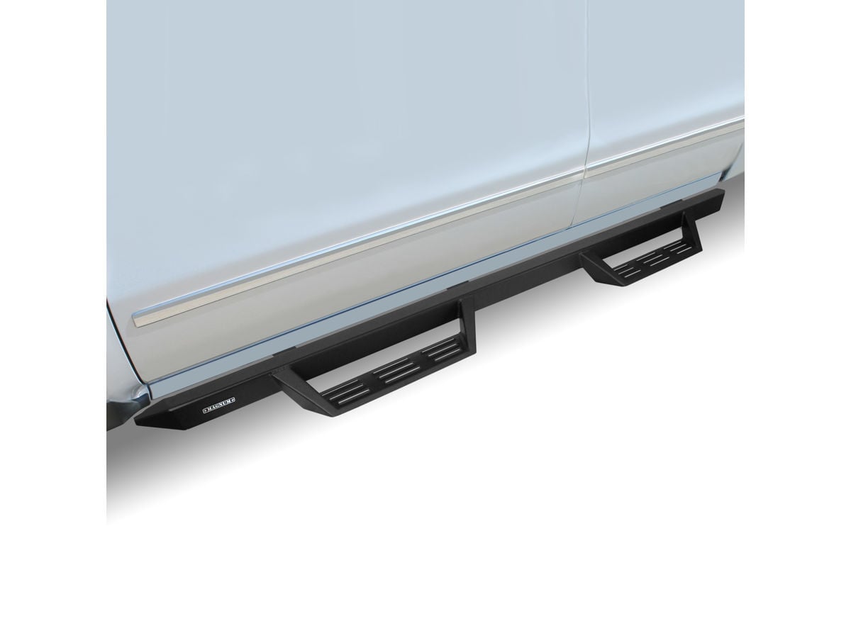 Magnum RT Gen 2 Drop Steps feature a new and improved 30% longer step area with raised slots providing easier entry and exit of your vehicle. These steps are constructed of heavy duty 14-gauge steel and designed to bolt to factory mounting locations using vehicle specific mounting brackets. They are coated with a 3 stage durable Black powder coat finish that resists corrosion against elements.