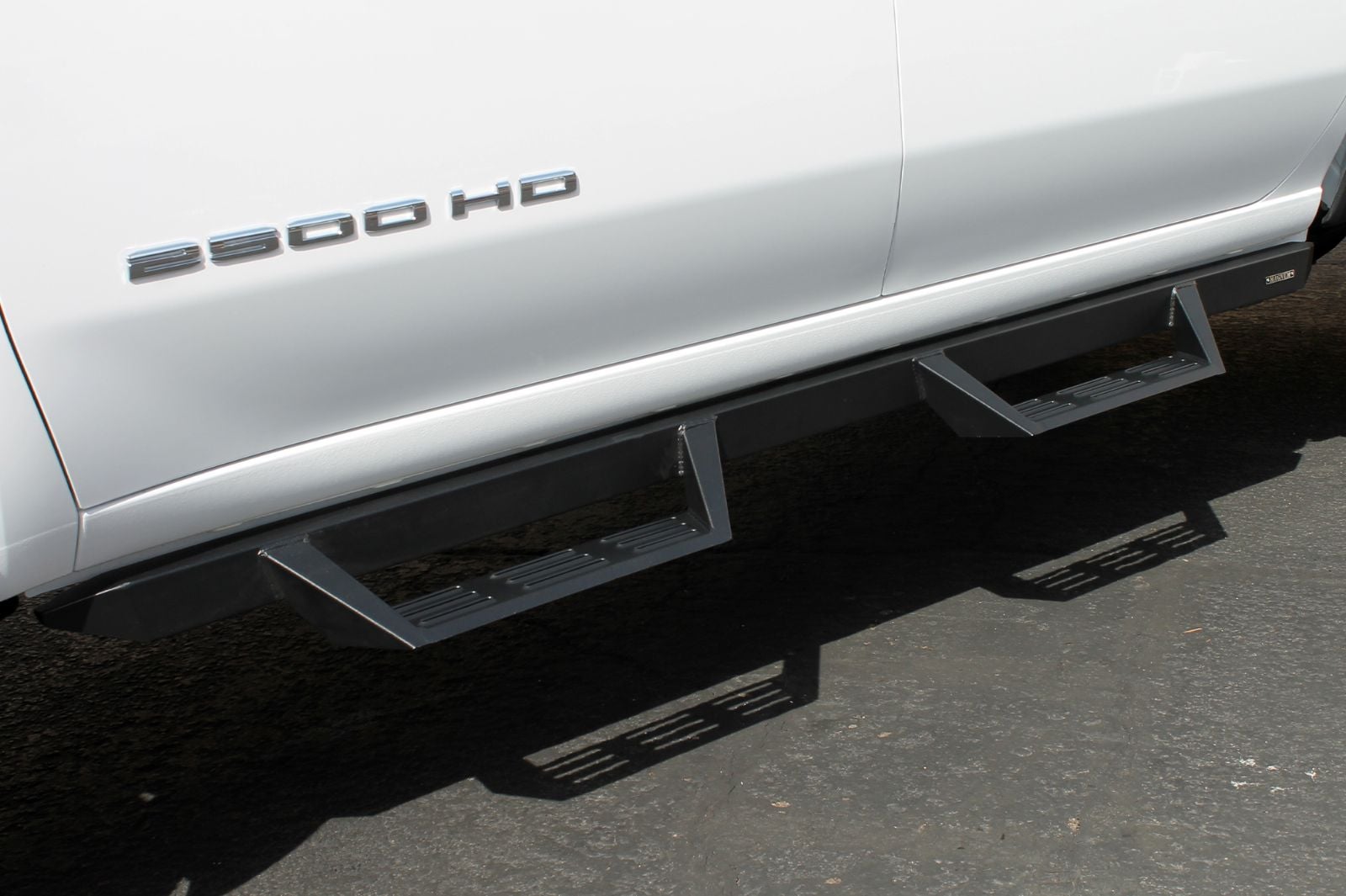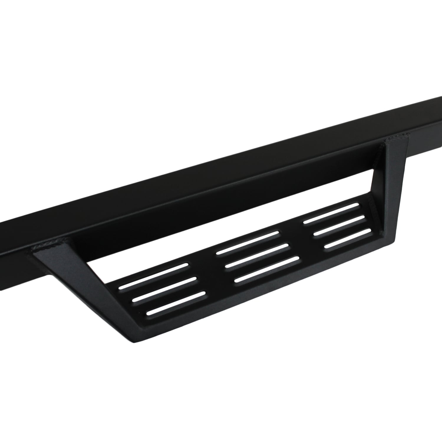 Magnum RT Gen 2 Steps are the 2.0 version of the original RT Step. They are 30% longer and wider with a die stamped slotted step area providing increased traction to securely step into the vehicle in any weather condition. They have a unique modern angled drop step design for easy and comfortable entry into the vehicle. Made from 14 gauge steel and finished with a 3 stage black powder coating system. Quality guaranteed with a limited lifetime manufacturer warranty on the workmanship/structure and a 10 year limited manufacturer warranty on the black powder coated finish.