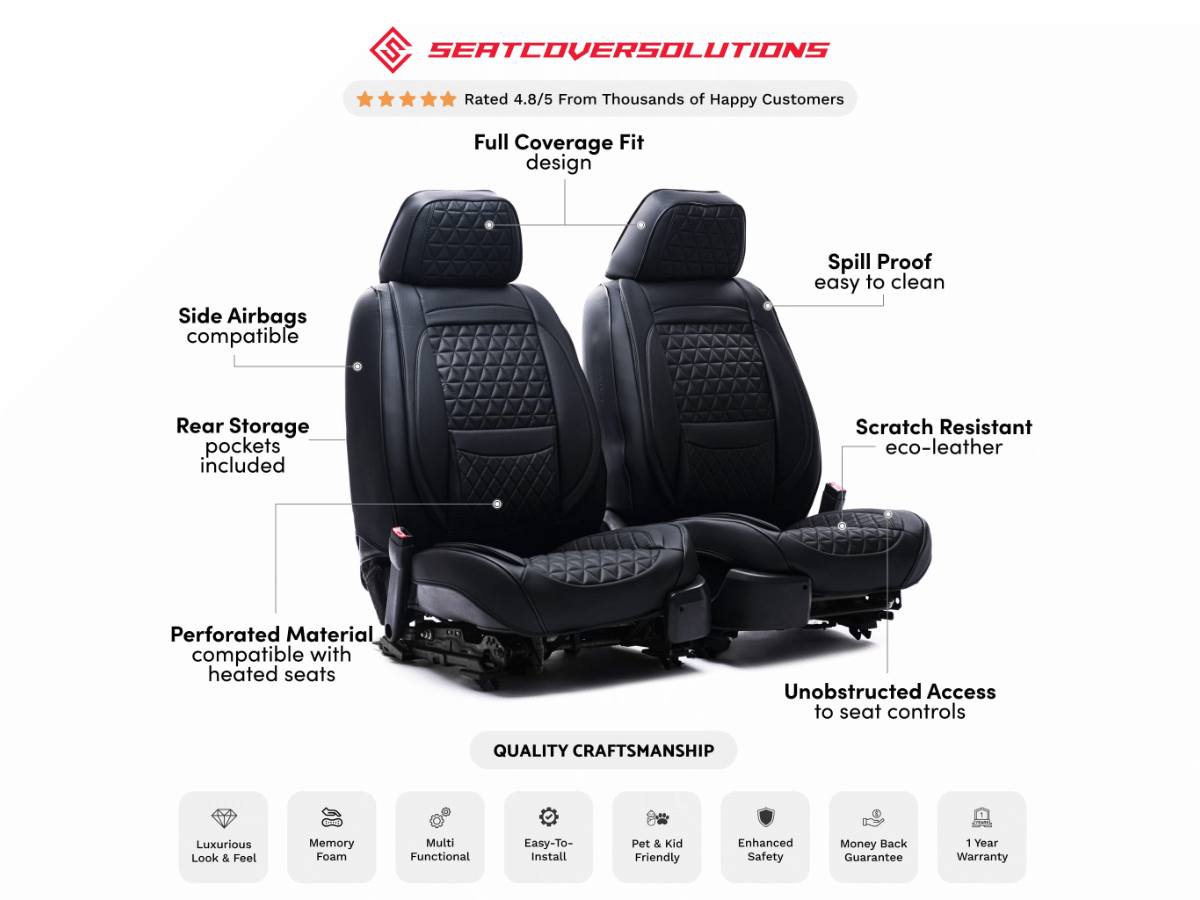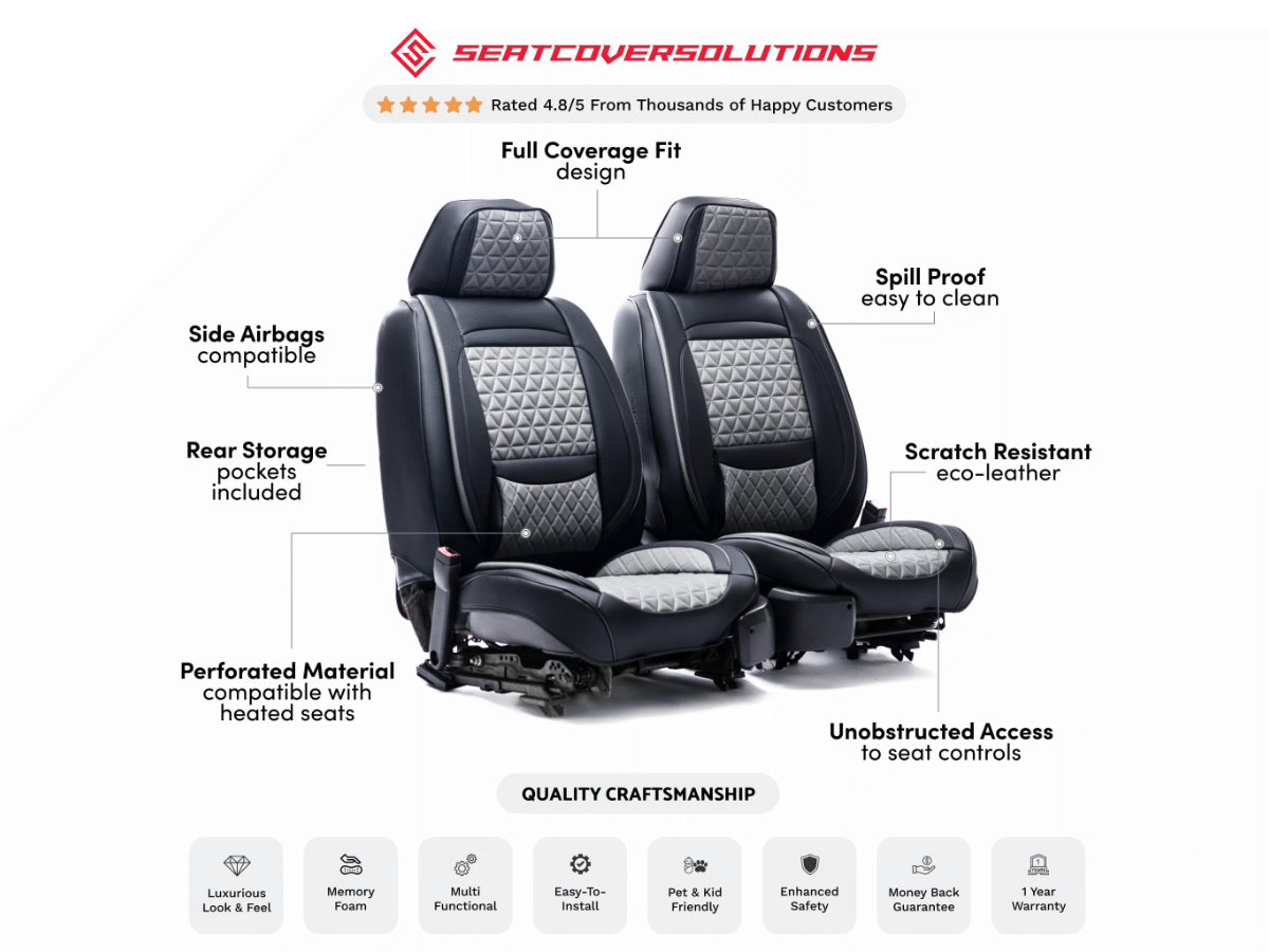 1 Year Warranty: Enjoy peace of mind with our one year warranty on all seat covers - protecting your investment and ensuring your satisfaction.
