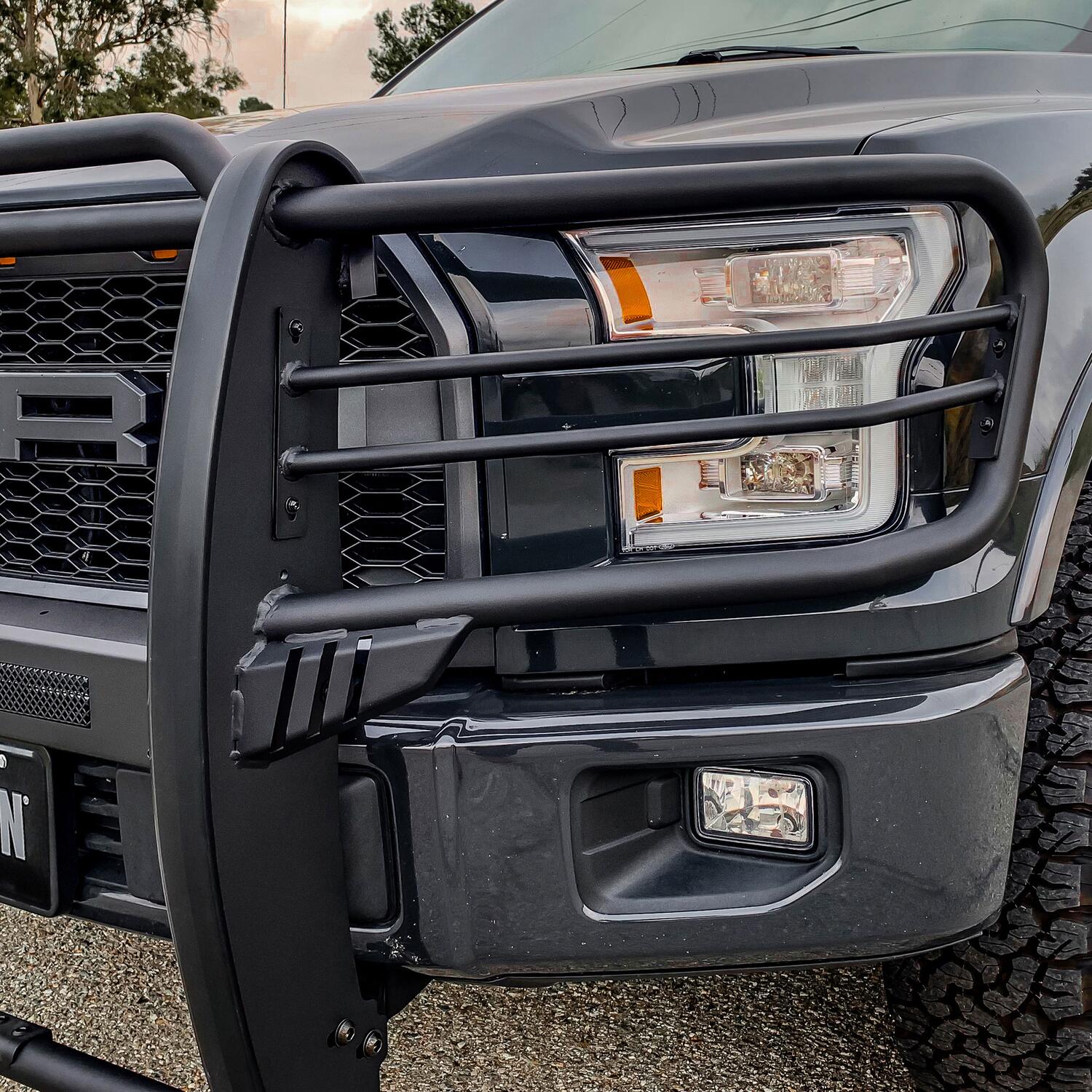 Westin's Sportsman X Grille Guard effectively combines aggressive styling with heavy duty front end protection. Engineered to provide both great looks and performance, Sportsman X’s unique design compliments today’s larger grille designs, and is available to fit most full and mid size truck applications. Sportsman X has an optional detachable mesh panel (sold separately) which is specifically designed to fit the opening in the center section of Sportsman X Grille Guard, or can be removed to accommodate the flush mounted 26” dual row LED light bar (sold separately). A smaller removable mesh panel designed for the factory sensor location opening is included as standard with Sportsman X. For specific Chevy and Dodge/RAM applications a Sportsman X Sensor Kit (sold separately) is available. An exterior step plate is located on the 1-5/8” bottom tube to provide easy access to the engine compartment. Built with heavy duty 2-1/4” upright rubber strips and 1- 5/8” outer tubes, Sportsman X Grille Guard is designed to provide protection and style for years to come.