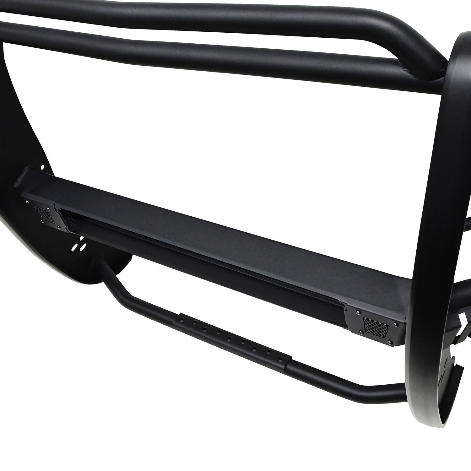 Westin's Sportsman X Grille Guard effectively combines aggressive styling with heavy duty front end protection. Engineered to provide both great looks and performance, Sportsman X’s unique design compliments today’s larger grille designs, and is available to fit most full and mid size truck applications. Sportsman X has an optional detachable mesh panel (sold separately) which is specifically designed to fit the opening in the center section of Sportsman X Grille Guard, or can be removed to accommodate the flush mounted 26” dual row LED light bar (sold separately). A smaller removable mesh panel designed for the factory sensor location opening is included as standard with Sportsman X. For specific Chevy and Dodge/RAM applications a Sportsman X Sensor Kit (sold separately) is available. An exterior step plate is located on the 1-5/8” bottom tube to provide easy access to the engine compartment. Built with heavy duty 2-1/4” upright rubber strips and 1- 5/8” outer tubes, Sportsman X Grille Guard is designed to provide protection and style for years to come.