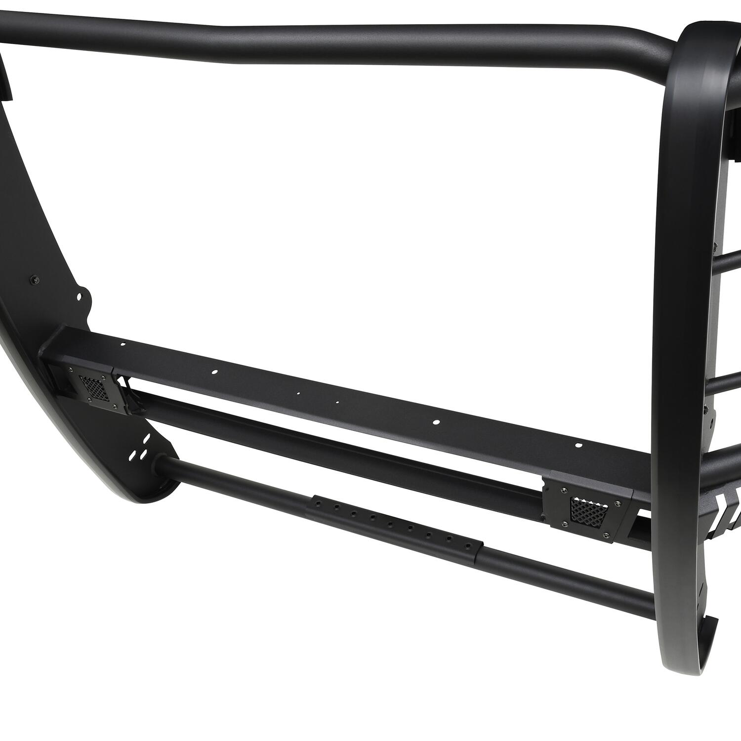 Westin's Sportsman X Grille Guard effectively combines aggressive styling with heavy duty front end protection. Engineered to provide both great looks and performance, Sportsman X’s unique design compliments today’s larger grille designs, and is available to fit most full and mid size truck applications. Sportsman X has an optional detachable mesh panel (sold separately) which is specifically designed to fit the opening in the center section of Sportsman X Grille Guard, or can be removed to accommodate the flush mounted 26” dual row LED light bar (sold separately). A smaller removable mesh panel designed for the factory sensor location opening is included as standard with Sportsman X. For specific Chevy and Dodge/RAM applications a Sportsman X Sensor Kit (sold separately) is available. An exterior step plate is located on the 1-5/8” bottom tube to provide easy access to the engine compartment. Built with heavy duty 2-1/4” upright rubber strips and 1- 5/8” outer tubes, Sportsman X Grille Guard is designed to provide protection and style for years to come.