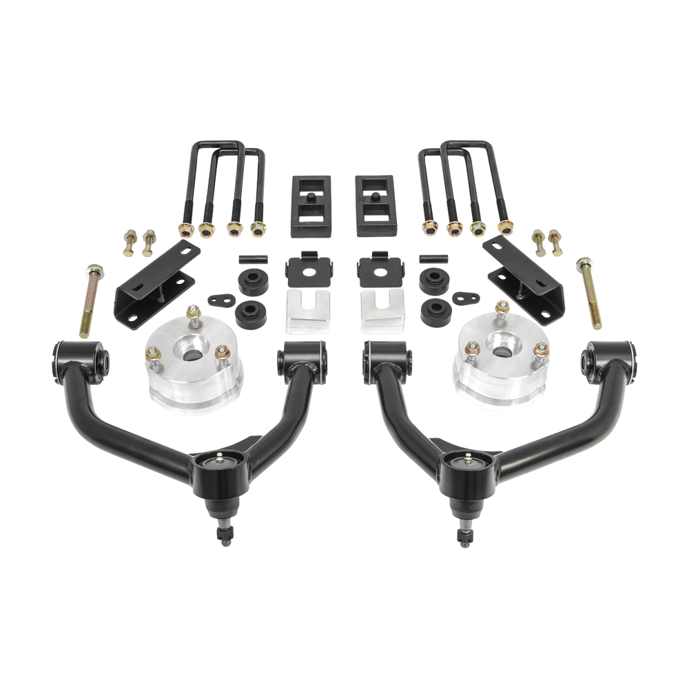 ReadyLIFT now offers a 3.5" SST lift kit for the 2015-2022 Chevy Colorado and GMC Canyon 2WD/4WD trucks! The 69-3535 SST Lift Kit provides a great lift solution to achieve a mild yet aggressive lifted stance while still maintaining important factory ride and handling. (This kit is not compatible with ZR2 edition or diesel engine applications.) This new lift kit provides 3.5" of front lift and 1" of rear lift for a nice level but lifted stance. This kit can easily allow for up to a 285/70-17 tire as shown here with XD Series Wheels Addict II 17x9 +18 offset wheels. This all-new no-cut kit includes new tubular steel upper control arms with adjusted ball joint pivot angles and establishes a true 3.5 inches of lift without compromising suspension or drive train geometry. Front lift includes our proprietary top hat replacement technology along with differential drop brackets, sway bar drop brackets and OE style 1" tall cast iron rear lift blocks. Made in USA. Includes CNC-machined aircraft-grade billet Aluminum front top hat replacement lift spacers and heavy-duty OEM style cast iron rear blocks. Includes tubular steel upper control arms with adjusted ball joint pivot angles housing a heavy-duty ball joint Allows for up to a 32.5x11.50" tire on up to +18 offset wheels. (285/70-17) Maintains the factory ride, handling and suspension geometry Unmatched curb-appeal and rugged mid-size truck capability delivered in an affordable yet innovative Smart Suspension Technology "no-cut" lift kit. NOTE: Use of Auto 4 Hi feature not recommended. NOTE: For gasoline engine applications only. Kit not recommended for diesel applications.