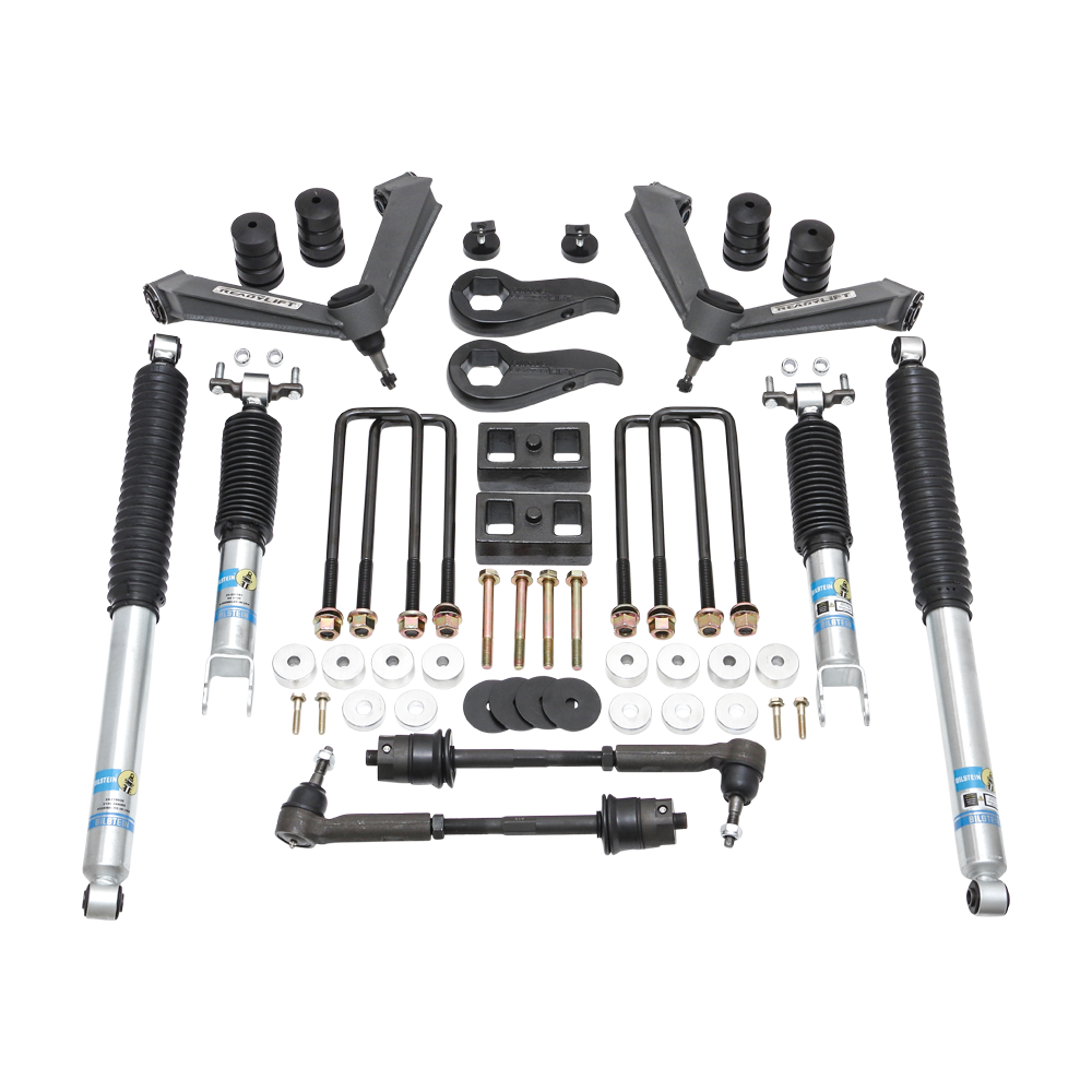 • SST lift specific Forged Torsion Keys with new F/R Bilstein 5100 series shocks, Xtreme-Duty fabricated steel upper control arms, heavy-duty tie rods, differential spacers, new longer bump stops, and longer hardware.