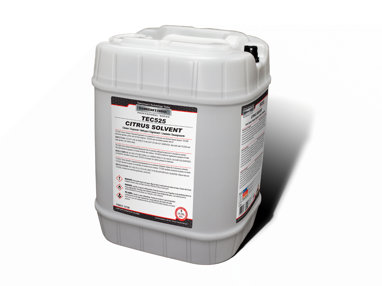 Technician’s Choice® TEC525 Citrus Solvent Cleaner/Degreaser…A powerful D-limonene and odorless mineral spirit based cleaner. Melts or removes tar, dissolves grease, grime and oil deposits from engines. Emulsifies grease and oil.