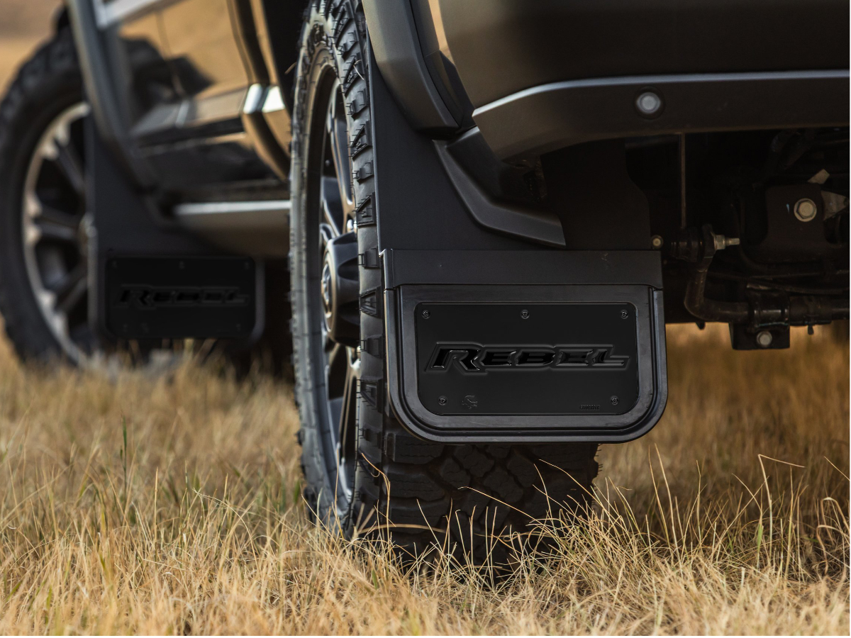 This Gatorback Offset Mud Flap set with black anodized "REBEL" text plates is designed to fit perfectly. The flaps are 12.5" of heavy duty rubber and are attached to a custom fit bracket. The brackets are made from nylon/fiberglass material that gives them the durability you need. The brackets will not fade or chip and have the holes that line up with the factory fasteners already in them for a quick, simple install. The heavy duty rubber ensures that there will not be any debris that gets passed these flaps. These install inside the wheel well and have a 1.5" offset for extra tire clearance and come with all the hardware needed. An added feature of these flaps is the rubber portion is removable from the bracket via a built in channel to allow the flap to slide in and out for easy removal. This gives you the options for extra ground clearance if needed. Giving you the options for extra ground clearance if needed. When you remove the factory mud guard there will be a small hole in the fender that the fender plugs will cover. That is why the color of your truck is needed. The Truck Hardware Gatorback series mud flaps are the industries highest quality heavy duty mud guards! The rugged design and quality finish of these mud flaps make the perfect compliment to your truck. Featuring a 1/2" thick rubber flap, these mud flaps are sure to impress while they protect your investment.
