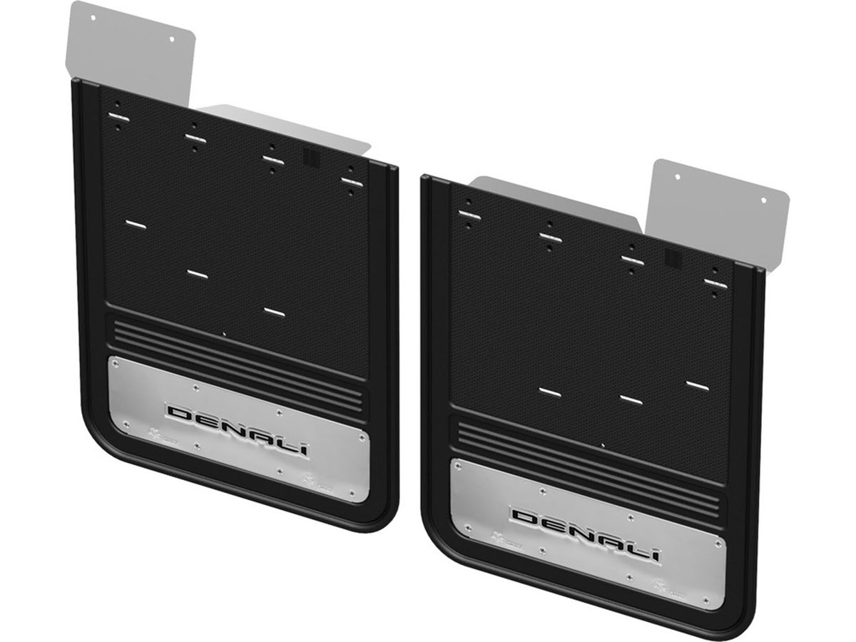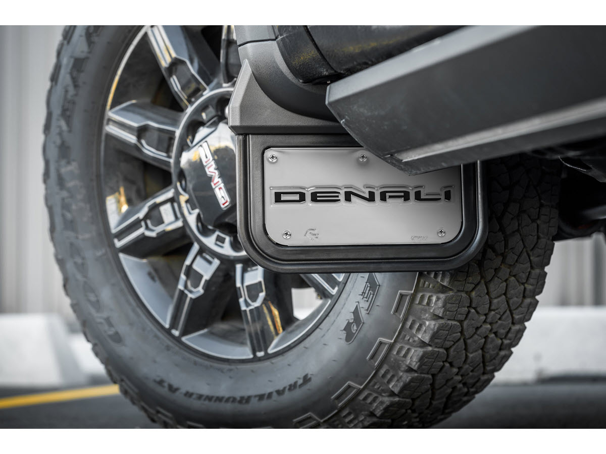 Constructed from 1/2" thick virgin rubber, these Gatorback mud flaps are built to last, providing superior durability and flexibility. Virgin rubber is highly resistant to impacts and wear, ensuring that the mud flaps maintain their effectiveness and aesthetic appeal for years. The "Denali" logo plates are die-stamped and officially licensed by GMC, adding a touch of class and bold style to your truck. The stainless steel plates are designed to be both functional and visually appealing, offering resistance to corrosion while highlighting the luxurious Denali branding.