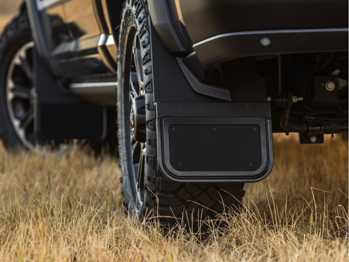 This Gatorback Offset Mud Flap set without plates is designed to fit perfectly. The flaps are 12.5" of heavy duty rubber and are attached to a custom fit bracket. The brackets are made from nylon/fiberglass material that gives them the durability you need. The brackets will not fade or chip and have the holes that line up with the factory fasteners already in them for a quick, simple install. The heavy duty rubber ensures that there will not be any debris that gets passed these flaps. These install inside the wheel well and have a 1.5" offset for extra tire clearance and come with all the hardware needed. An added feature of these flaps is the rubber portion is removable from the bracket via a built in channel to allow the flap to slide in and out for easy removal. This gives you the options for extra ground clearance if needed. Giving you the options for extra ground clearance if needed. When you remove the factory mud guard there will be a small hole in the fender that the fender plugs will cover. That is why the color of your truck is needed. The Truck Hardware Gatorback series mud flaps are the industries highest quality heavy duty mud guards! The rugged design and quality finish of these mud flaps make the perfect compliment to your truck. Featuring a 1/2" thick rubber flap, these mud flaps are sure to impress while they protect your investment.