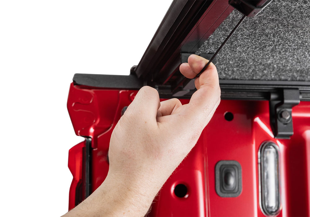 If you’re in the market for sleek, stylish bed protection for your pickup, consider the low-profile, color-matched aesthetic of a Fusion Tonneau Cover from UnderCover®. This tonneau cover offers a classic tri-fold design, exceptional security, and professionally paint-matched top panels that blend seamlessly with the body of your pickup. This tonneau cover features a rugged aluminum panel construction for maximum strength and theft resistance. Unlike theft-prone soft covers, the UnderCover Fusion resists cuts and slashes, keeping the valuables in your truck’s bed safe and secure. However, this cover doesn’t only resist theft but also extreme weather conditions. Integrated EPDM rubber hinges and perimeter seals prevent moisture intrusion, protecting your cargo against heavy rain, dirt, dust, and other contaminants. Aesthetically, the UnderCover Fusion is tough to beat. Unlike most competitors, which feature a textured black finish that blends into the bed, the UnderCover Fusion features painted top panels that are professionally color-matched to your pickup’s factory paint code, ensuring a flawless match to your pickup’s body. UnderCover backs this finish with a limited lifetime warranty. Operating the UnderCover Fusion Tonneau Cover is simple and intuitive. The classic tri-fold design features three panels and three sets of hinges, which allow you to fold the cover onto itself toward the bulkhead for cargo access. Whereas most tri-fold tonneau covers only offer ⅔ bed access, the UnderCover Fusion features integrated prop rods that support the cover flush against the rear window for complete cargo access. Installation is also a breeze with UnderCover’s clamp-on L-Rail system. Closing the cover is just as easy—simply fold it back toward the tailgate as the cover’s automatic slam latches engage with the redesigned L-Rails. The cover’s dual-action tailgate seal allows you to operate the tailgate whether the tonneau cover is opened or closed.