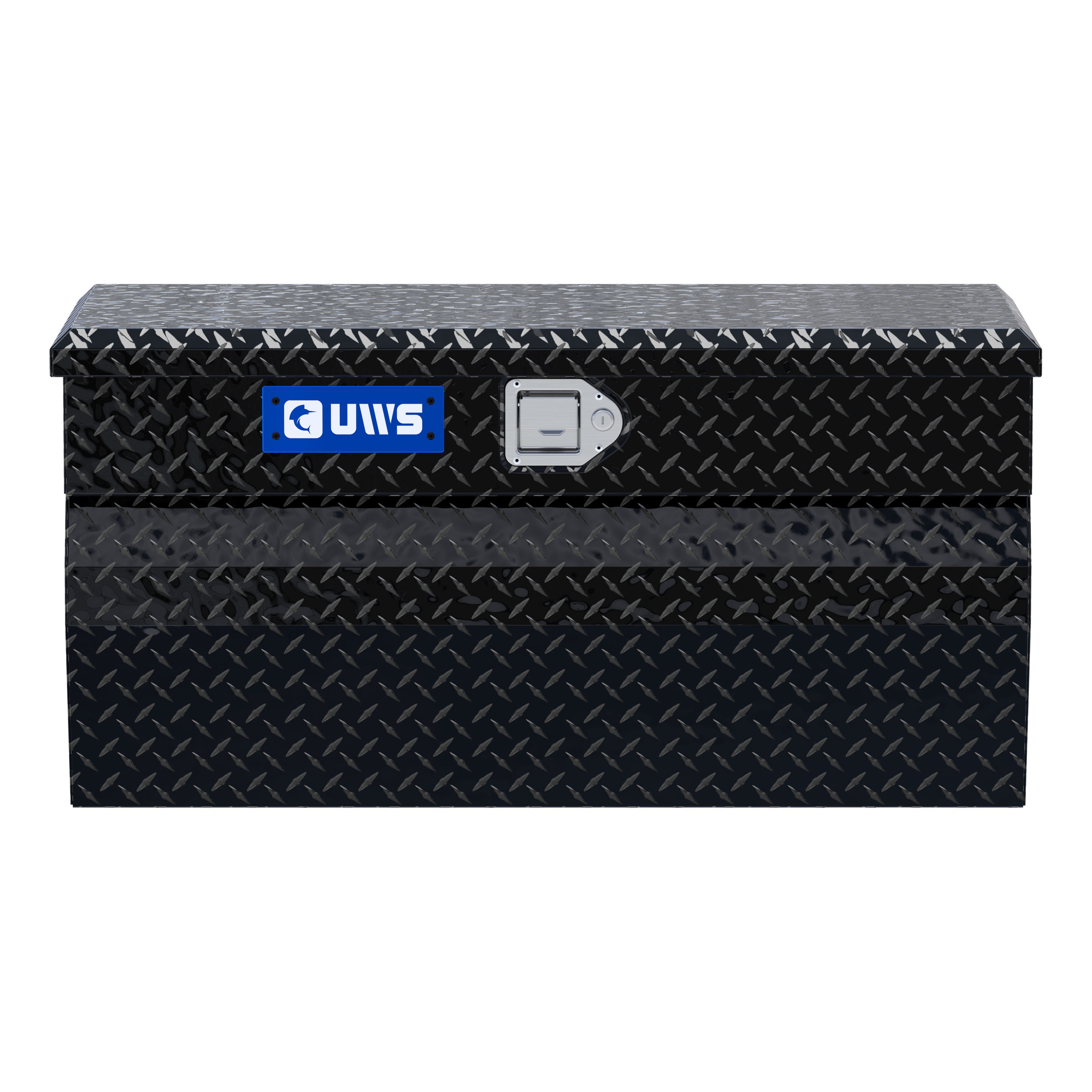 The UWS wedged utility chest box is the perfect solution for keeping your items safe, secure and accessible in the bed of your truck. It features extra-thick aluminum construction with our patented RigidCore™ foam-filled lid for maximum strength, and it guards your valuables with a stainless steel lock handle. The wedge design allows it to offer optimal storage capacity without obstructing the wheel wells or truck bed accessories. UWS truck tool boxes also come with a self-opening lid for easier access when your hands are full. Like all UWS tool boxes for trucks, this product is proudly made right here in the USA. NOTE: This product is heavily packaged for parcel shipment.