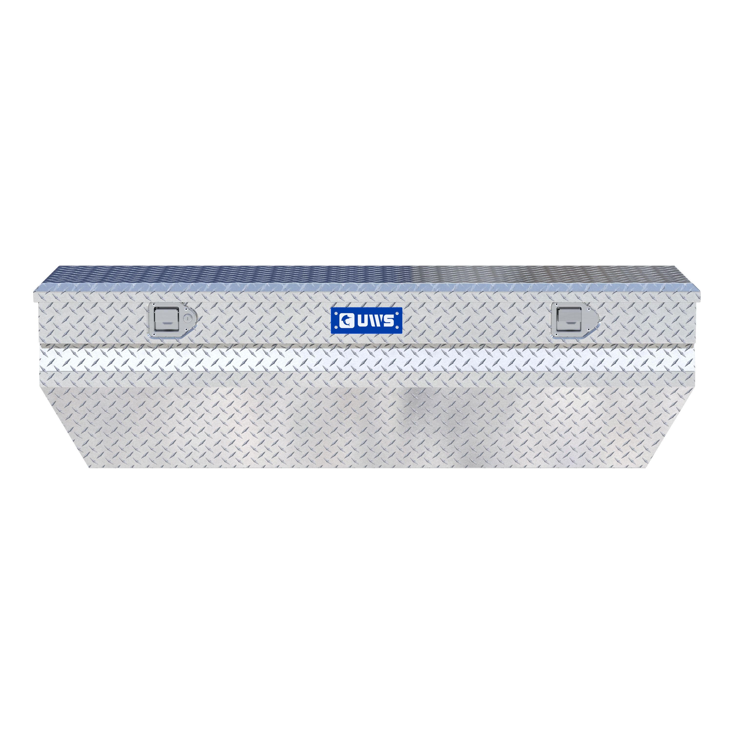 The UWS wedged utility chest box is the perfect solution for keeping your items safe, secure and accessible in the bed of your truck. It features extra-thick aluminum construction with our patented RigidCore™ foam-filled lid for maximum strength, and it guards your valuables with a stainless steel lock handle. The wedge design allows it to offer optimal storage capacity without obstructing the wheel wells or truck bed accessories. UWS truck tool boxes also come with a self-opening lid for easier access when your hands are full. Like all UWS tool boxes for trucks, this product is proudly made right here in the USA. NOTE: This product is heavily packaged for parcel shipment.