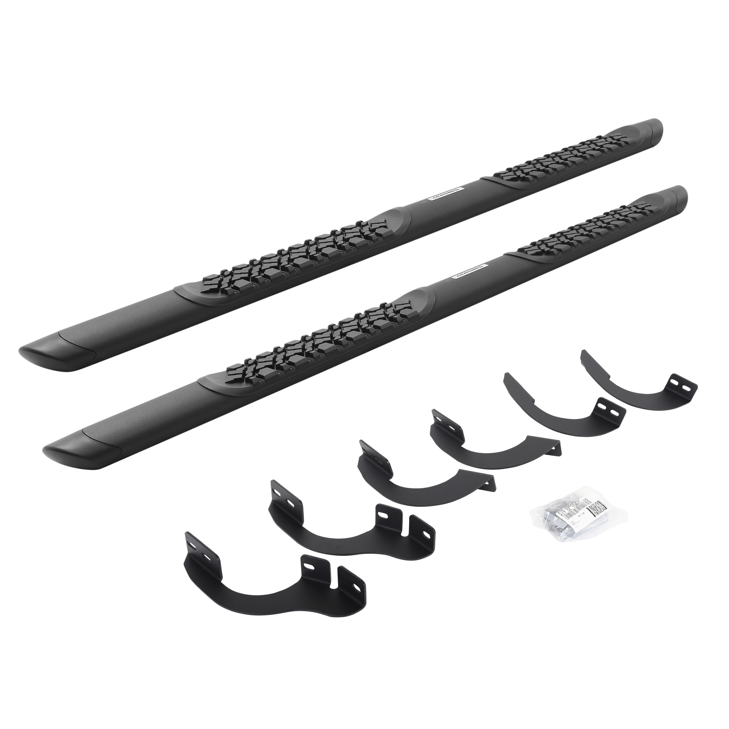 Constructed of corrosion-resistant aluminum,and finished with a textured black powder coating, Go Rhino's V-Series V3 Side Steps offer strength and rugged good looks while reducing the risk of slipping when stepping up into your vehicle. The 5" wide ellipse-shaped boards feature anti-slip polymer step pads with a multi-dimensional tire tread pattern so rain, snow and slush easily drain. Each V-Series V3 board is fortified with a dual core full length extrusion allowing the board to support up to 300 lbs per side (600 lbs per side for 4-door vehicles).