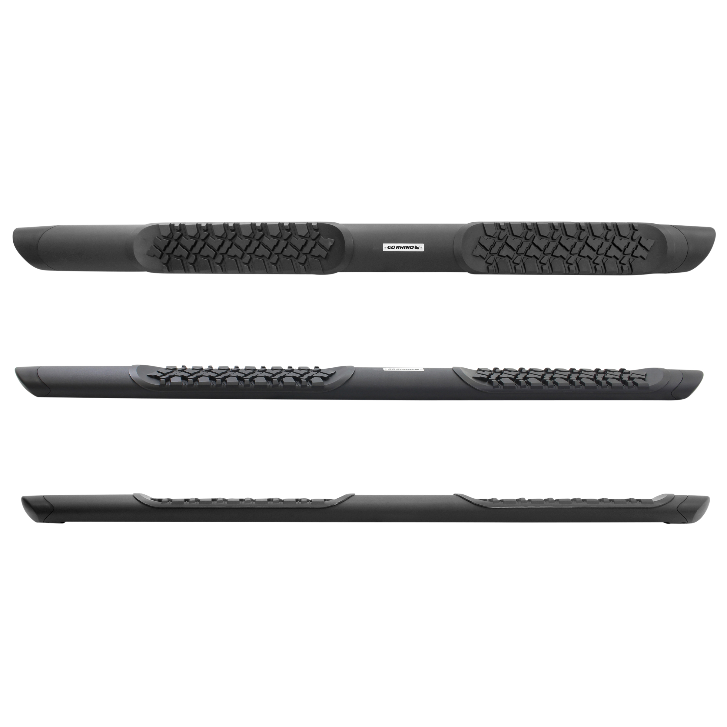 Constructed of corrosion-resistant aluminum,and finished with a textured black powder coating, Go Rhino's V-Series V3 Side Steps offer strength and rugged good looks while reducing the risk of slipping when stepping up into your vehicle. The 5" wide ellipse-shaped boards feature anti-slip polymer step pads with a multi-dimensional tire tread pattern so rain, snow and slush easily drain. Each V-Series V3 board is fortified with a dual core full length extrusion allowing the board to support up to 300 lbs per side (600 lbs per side for 4-door vehicles).