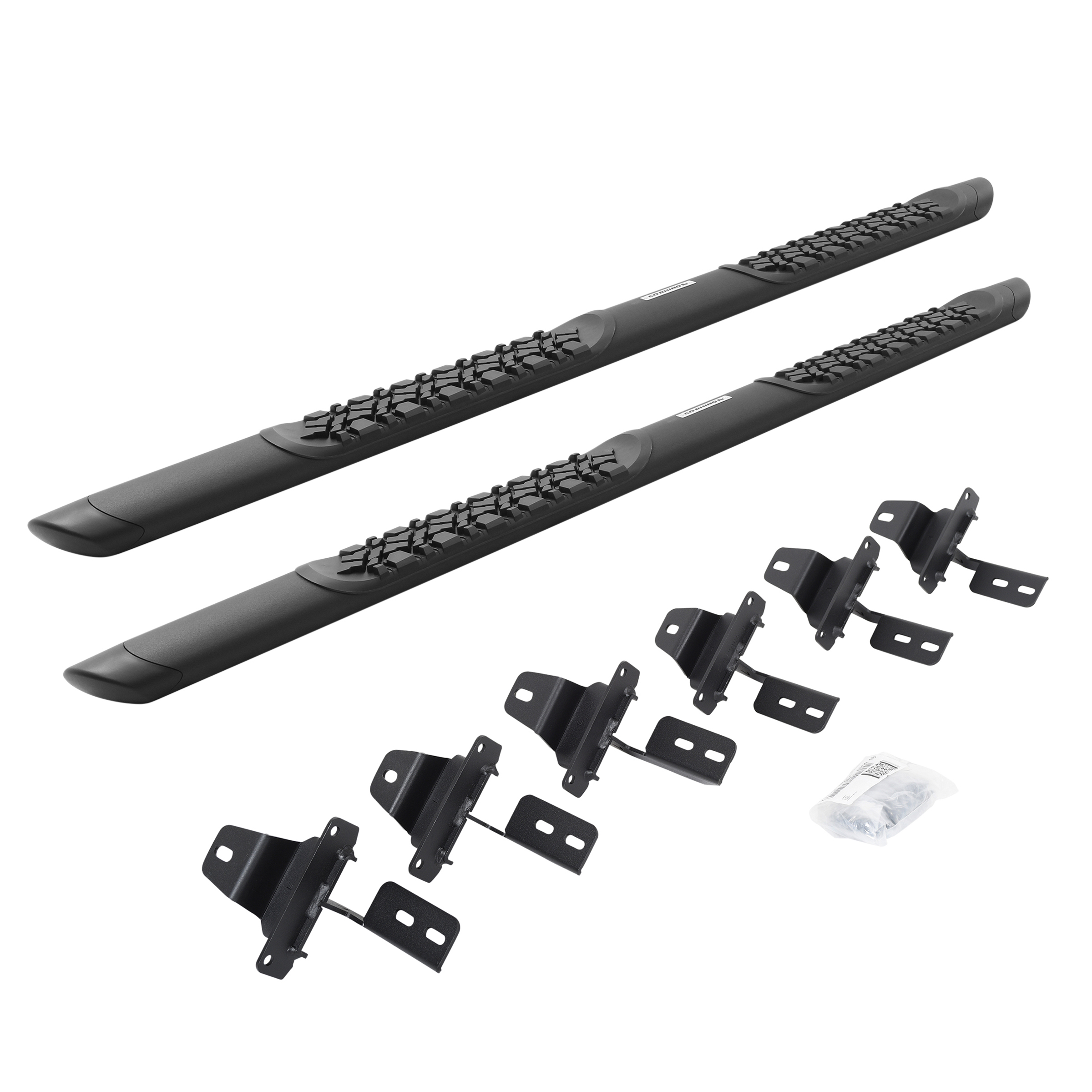 Constructed of corrosion-resistant aluminum,and finished with a textured black powder coating, Go Rhino's V-Series V3 Side Steps offer strength and rugged good looks while reducing the risk of slipping when stepping up into your vehicle. The 5" wide ellipse-shaped boards feature anti-slip polymer step pads with a multi-dimensional tire tread pattern so rain, snow and slush easily drain. Each V-Series V3 board is fortified with a dual core full length extrusion allowing the board to support up to 300 lbs per side (600 lbs per side for 4-door vehicles).