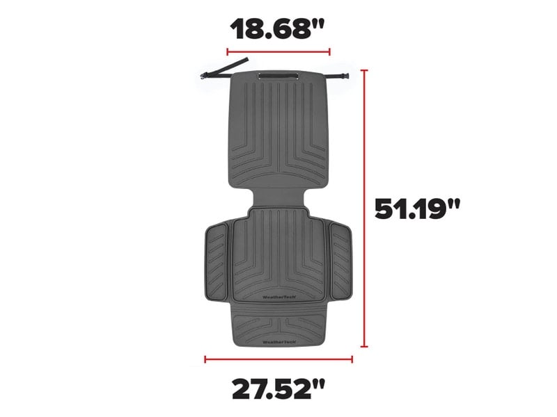 Without the WeatherTech Child Car Seat Protector, your car’s upholstery doesn’t stand a chance from the wear and tear kids and their seats put on it. Child Car Seat Protector provides protection against spills, crumbs and compression damage on your fabric or leather. A high-quality construction ensures your kid’s clasped-down seats and hard edges don't permeate your leather or stretch your cloth interior. A front flap falls over the edge of the seat for extra coverage. An anti-skid surface on the top and bottom helps prevent slipping and sliding. Contoured to your vehicle seat to provide essential protection. Side flaps are trimmable to custom-fit your area of protection. Child Car Seat Protector is shaped to ensure no interference with seatbelts, and its sturdy, durable design is built to last, so you can use it with all of your car seats as your baby grows into childhood. One size fits under virtually any rear or forward-facing child car seat or booster. Crash tested and approved to maintain the safety and integrity of the child car seat using the Federal Motor Vehicle Safety Standards (FMVSS) for Child Restraint Systems (CRS), FMVSS-213. Designed, engineered and built in America, Child Car Seat Protector is crash tested and approved. Easy to wipe down and clean - or use our TechCare® FloorLiner and FloorMat Cleaner to gently degrease and lift dirt and debris away. Available in black, grey, tan and cocoa.