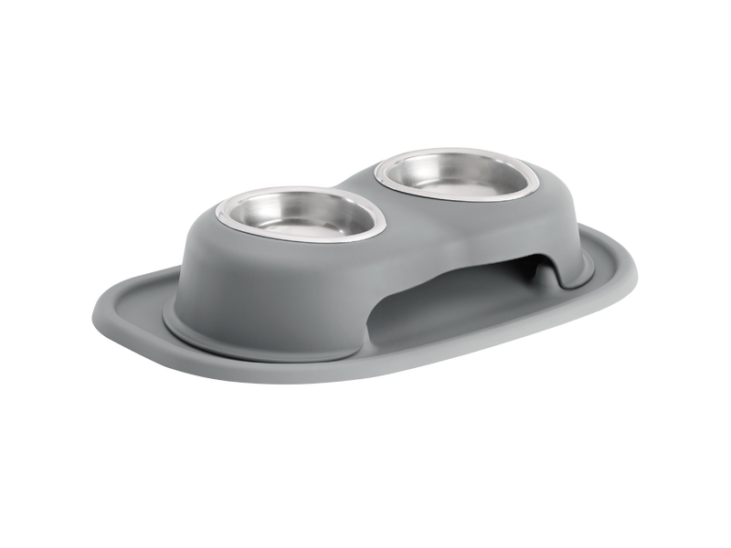 Weathertech Pet Feeding System - Double High 3" - 8 oz Stainless Bowls - Light Gray