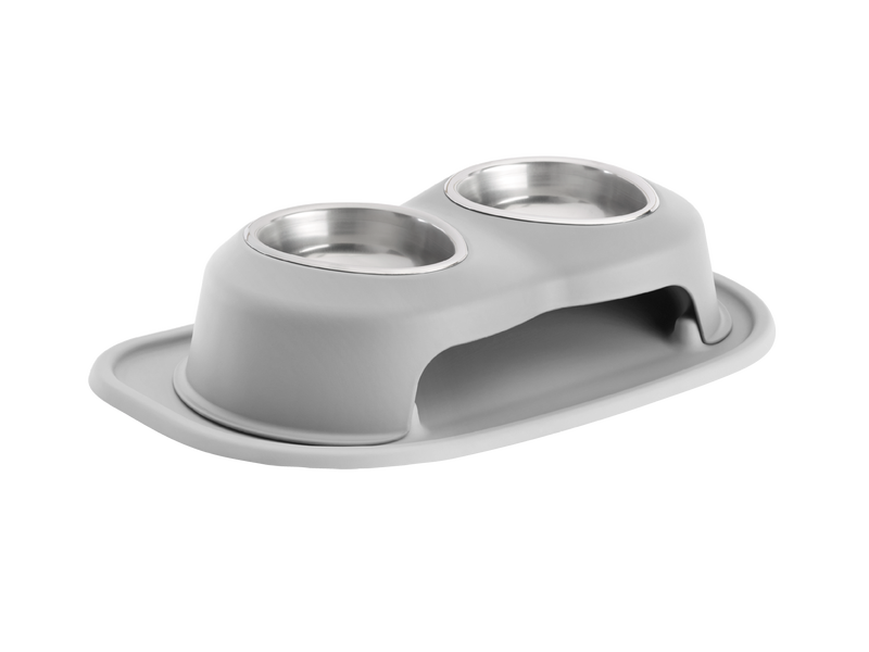 Weathertech Pet Feeding System - Double High 4" - 16 oz Stainless Bowls - Light Gray