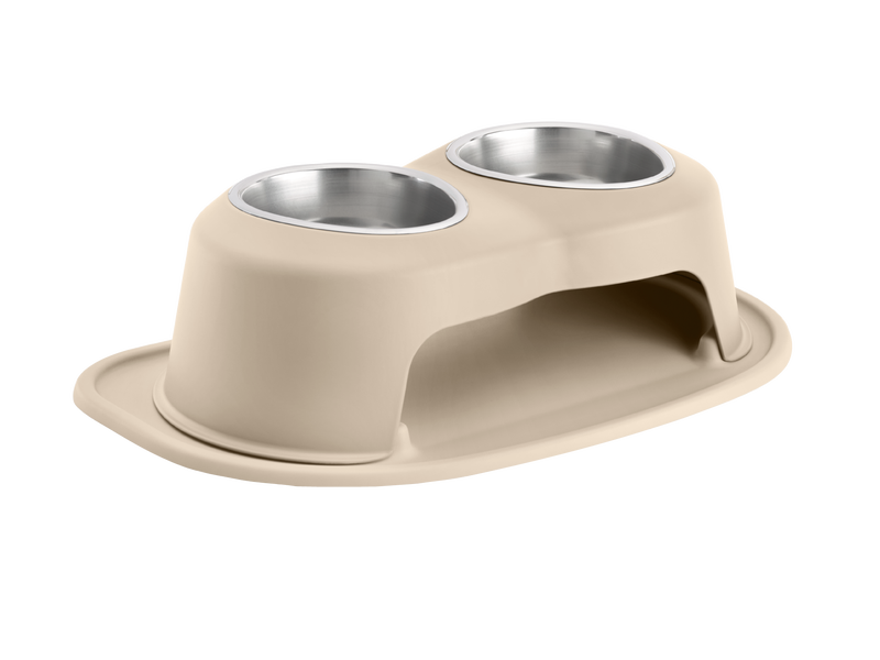 Weathertech Pet Feeding System - Double High 6" - 32 oz Stainless Bowls - Tan
