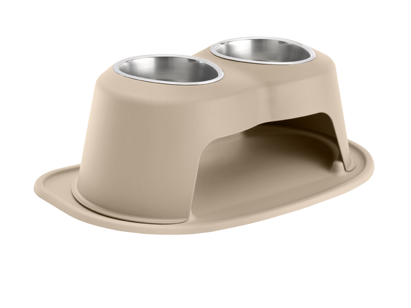 Weathertech Pet Feeding System - Double High 8" - 32 oz Stainless Bowls - Tan