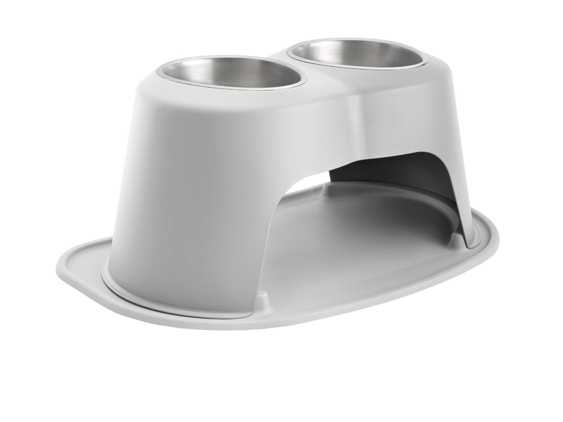Weathertech Pet Feeding System - Double High 12" - 64 oz Stainless Bowls - Light Gray
