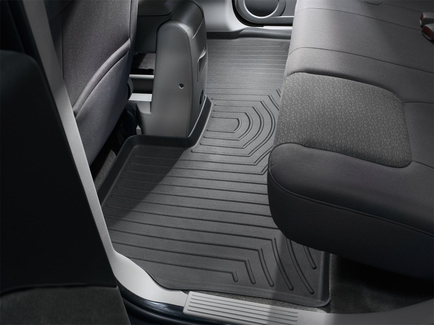 Rear FloorLiner DigitalFit incorporates many of the same design features as the front FloorLiner DigitalFit. Rear FloorLiner DigitalFit (where offered) is manufactured from a proprietary custom blended TPO (thermopolyolefin) that is not only wear resistant, but also remains flexible under extreme temperatures. Rear FloorLiner DigitalFit is either one piece or two piece depending on the vehicle application.