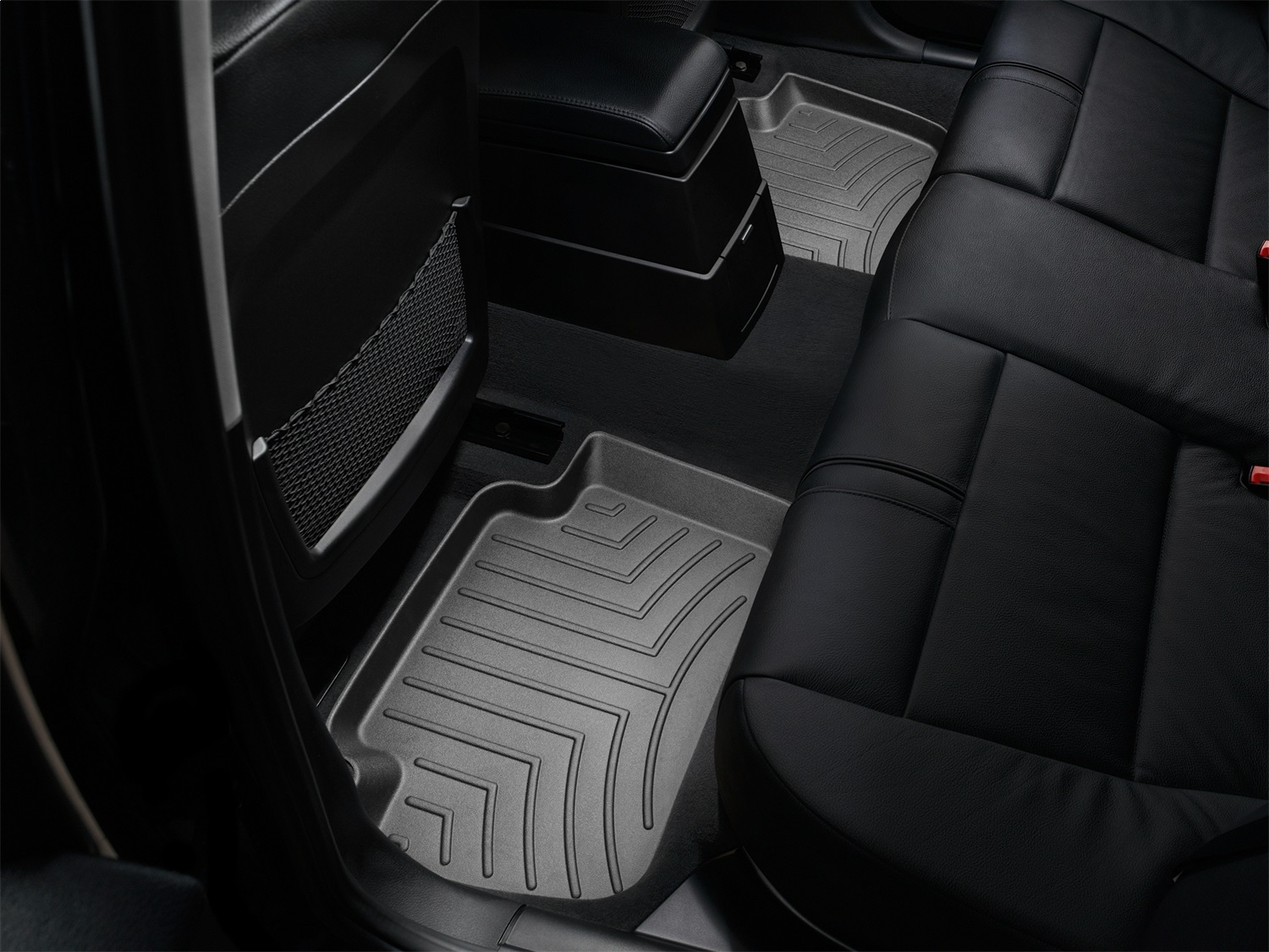 Rear FloorLiner DigitalFit incorporates many of the same design features as the front FloorLiner DigitalFit. Rear FloorLiner DigitalFit (where offered) is manufactured from a proprietary custom blended TPO (thermopolyolefin) that is not only wear resistant, but also remains flexible under extreme temperatures. Rear FloorLiner DigitalFit is either one piece or two piece depending on the vehicle application.