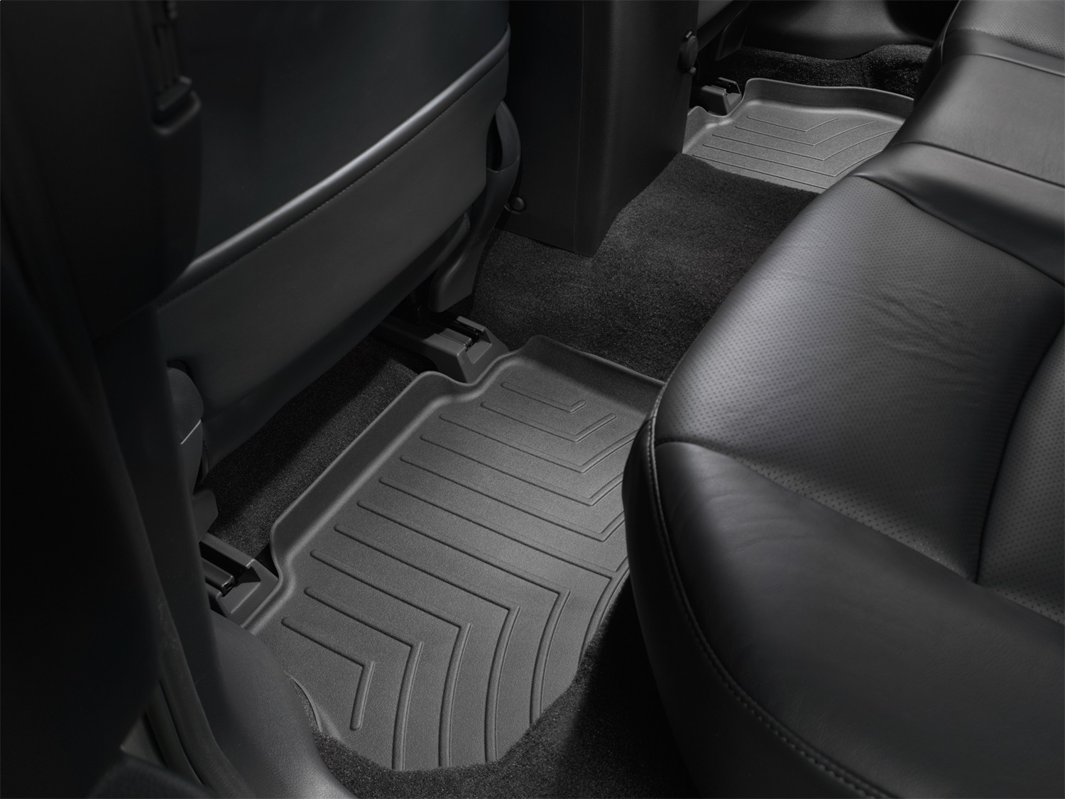 Rear FloorLiner DigitalFit incorporates many of the same design features as the front FloorLiner DigitalFit. Rear FloorLiner DigitalFit (where offered) is manufactured from a proprietary custom blended TPO (thermopolyolefin) that is not only wear resistant, but also remains flexible under extreme temperatures. Rear FloorLiner DigitalFit is either one piece or two piece depending on the vehicle application.