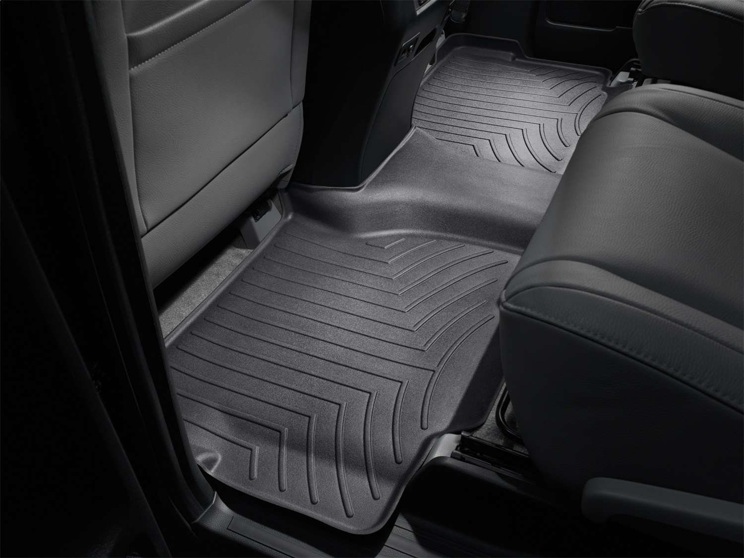 Rear FloorLiner DigitalFit incorporates many of the same design features as the front FloorLiner DigitalFit. Rear FloorLiner DigitalFit (where offered) is manufactured from a proprietary custom blended TPO (thermopolyolefin) that is not only wear resistant, but also remains flexible under extreme temperatures. Rear FloorLiner DigitalFit is either one piece or two piece depending on the vehicle application.