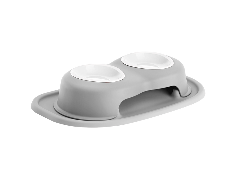Weathertech Pet Feeding System - Double High 3" - 8 oz Poly Bowls - Light Gray