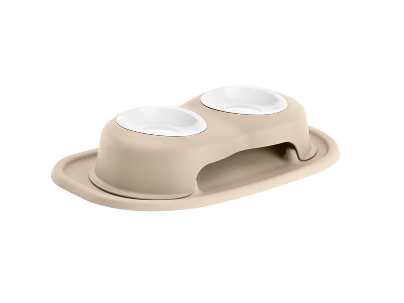 Weathertech Pet Feeding System - Double High 3" - 8 oz Poly Bowls - Tan