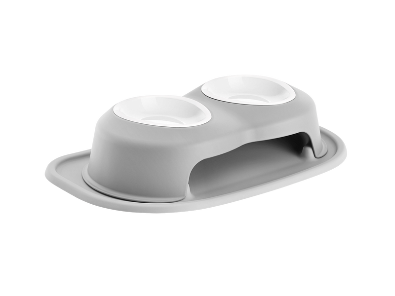 Weathertech Pet Feeding System - Double High 4" - 16 oz Poly Bowls - Light Gray