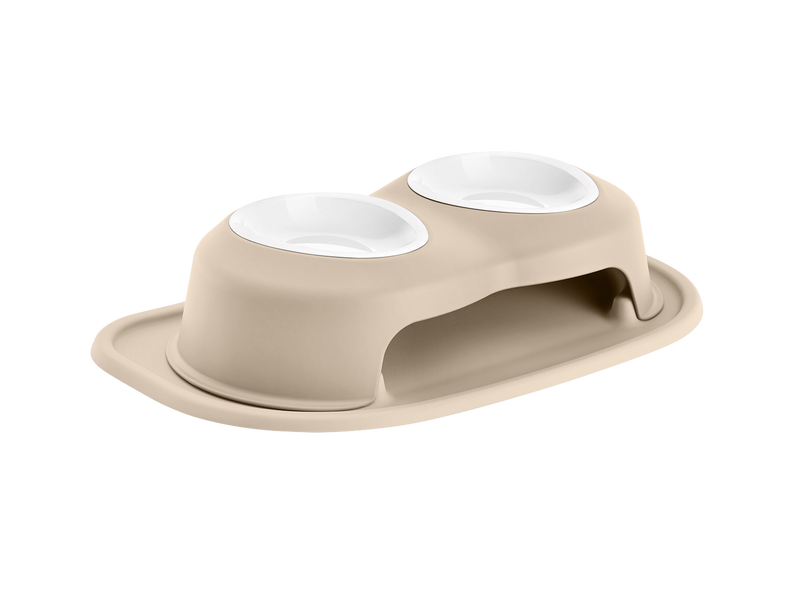 Weathertech Pet Feeding System - Double High 4" - 16 oz Poly Bowls - Tan