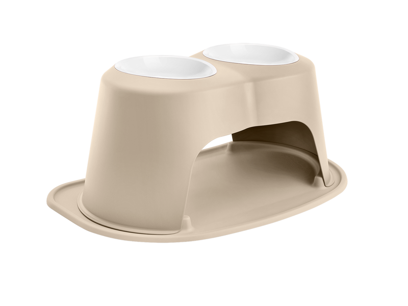 Weathertech Pet Feeding System - Double High 10" - 64 oz Poly Bowls - Tan