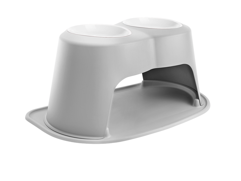 Weathertech Pet Feeding System - Double High 14" - 96 oz Poly Bowls - Light Gray
