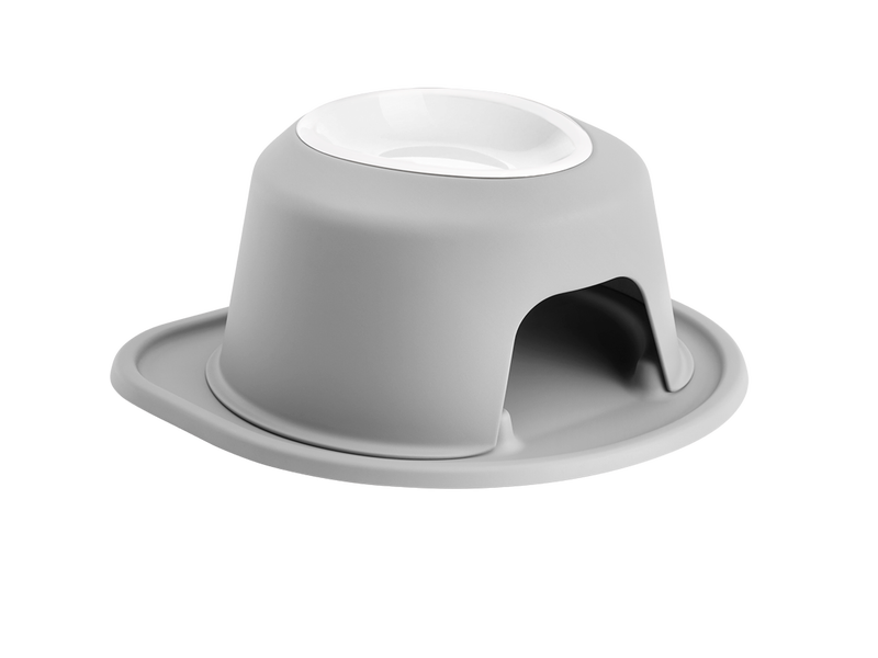 • Integrated Spill Mat: Contains messes with a raised lip and built-in channels to catch food and water overflow