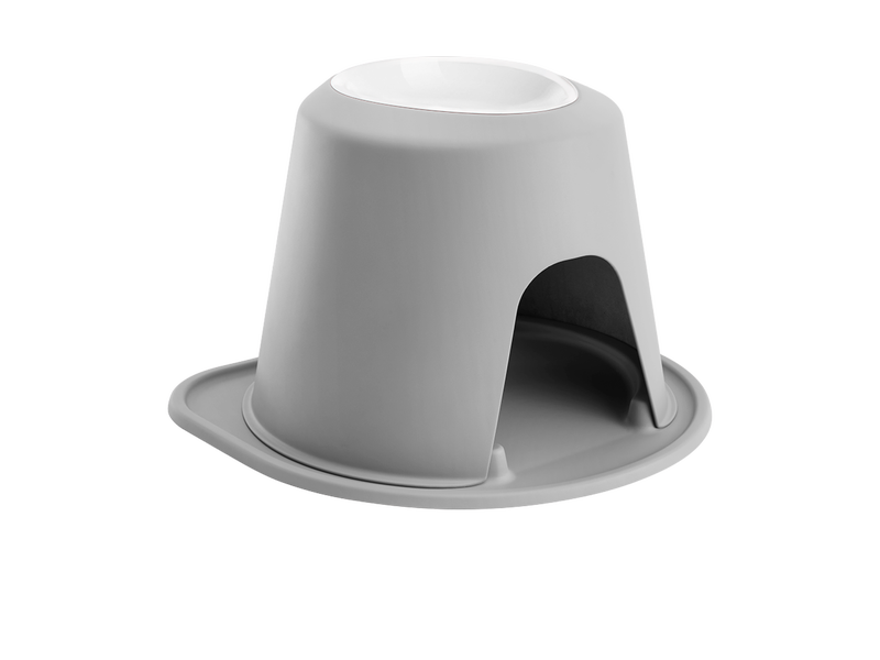 • Integrated Spill Mat: Contains messes with a raised lip and built-in channels to catch food and water overflow
