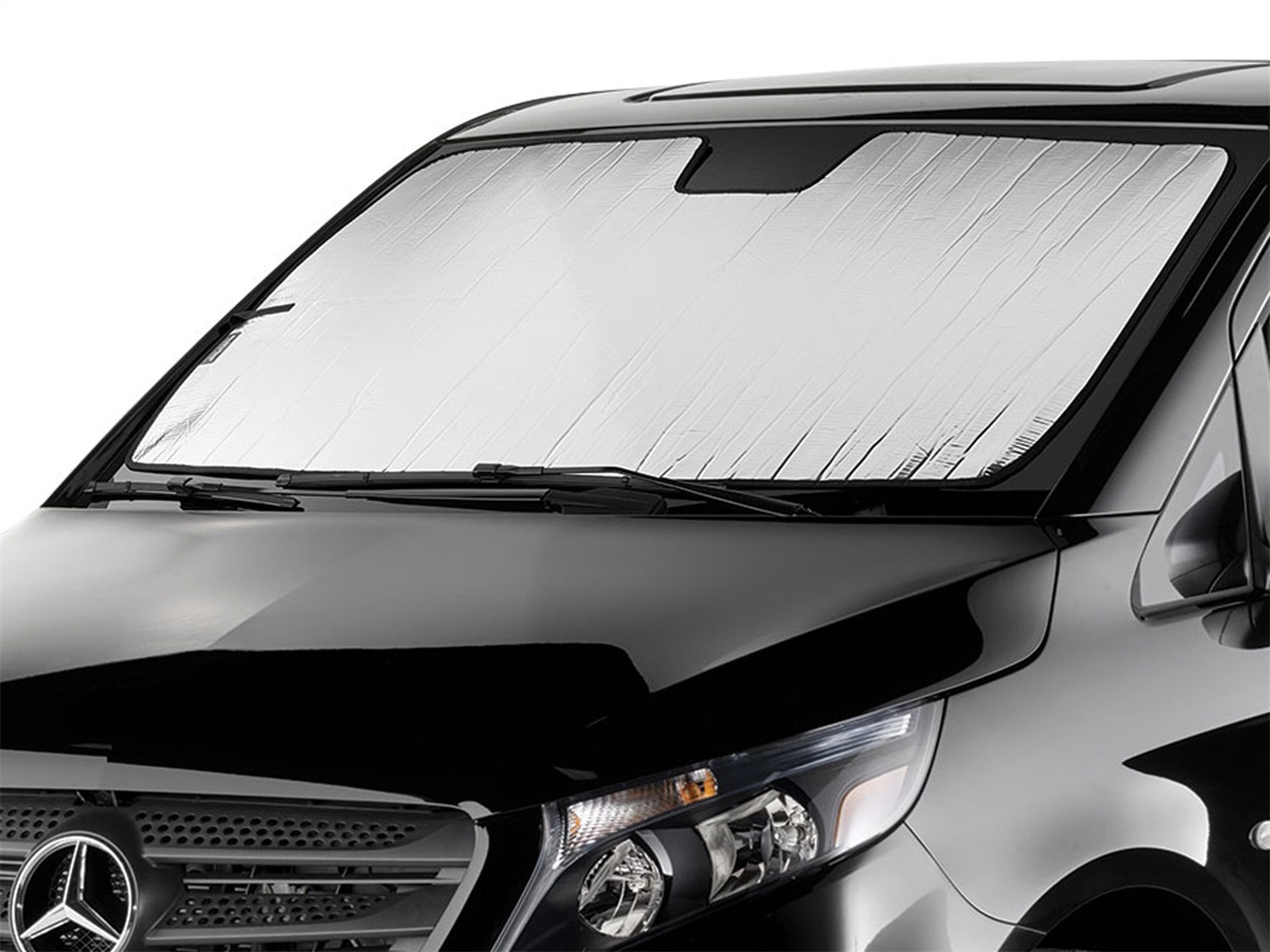 The WeatherTech SunShade is a custom-fit, dual-purpose windshield sunshade designed to help keep your vehicle’s interior temperatures controlled throughout the year. Crafted with a reflective silver exterior and a soft felt interior, it is engineered to protect the dashboard and interior surfaces from sun damage and reduce heat buildup. Purpose: Summer: Reflects intense sunlight to keep the interior cool and reduce dashboard fade or cracking. Winter: Acts as an insulating barrier, helping to block cold air and frost from building up on the inside of the windshield. Year-round interior protection from UV rays, heat damage, and temperature swings. Ideal Use: Daily drivers who park outdoors regularly. Vehicles exposed to direct sunlight for extended periods (work sites, airport parking, street parking). People living in extreme climates—both hot summers and cold winters. Ideal for those who want to preserve the resale value of their vehicle by protecting the dash and interior trim. Added Features: Custom-fit to your specific make and model for maximum coverage and effectiveness. Dual-purpose design: Reflective silver side for hot weather, black felt side for cold conditions. Durable construction using high-quality materials that resist wear and tear. Rolls up easily for convenient storage with an optional hook-and-loop strap. Reversible depending on seasonal needs. Made in the USA for most applications.