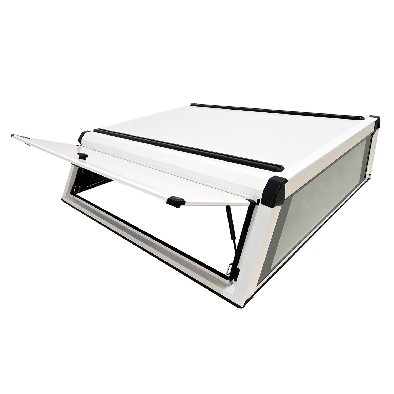 Elevate your truck experience with the Westin EXP Topper – your journey, your way. With multiple door openings featuring locking handles, this topper ensures maximum access and security, offering peace of mind in every journey. In emergency situations, the integrated emergency release lever on all interior doors allows for quick and effortless unlocking. The convenience doesn't stop there – integrated roof rails provide the perfect platform to mount accessories (crossbars sold separately), enhancing your truck's versatility. Designed with a 5-panel double-walled aluminum construction, the EXP Topper strikes the perfect balance between strength and weight reduction, setting it apart from the rest. Safety takes center stage with the built-in third brake light, significantly improving visibility, especially in low-light or inclement weather conditions. Weatherproof joints and seals guarantee durability and confidence, ensuring protection against the elements. The magnetic interior rechargeable LED light included ensures instant illumination wherever needed, adding a touch of practicality to your journeys. With a static load limit of 700 lbs. and a dynamic load limit of 300 lbs., the EXP Topper is ready for any challenge. OEM fitment allows for easy installation and assembles in 1 hour or less. Plus, enjoy the freedom of complete removal in 15 minutes or less, offering quick and hassle-free access to your bed's cargo area. The powder-coated aluminum finish provides long-lasting corrosion protection, and the matte black finish, along with all necessary hardware and installation instructions included, completes the package. Experience durability, convenience, and style with the Westin EXP Topper – because your truck deserves the best.
