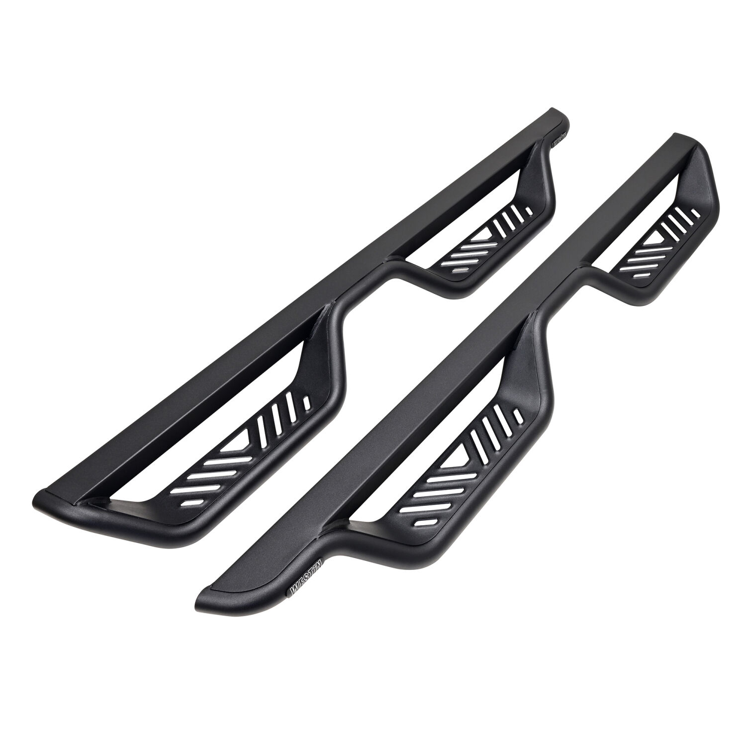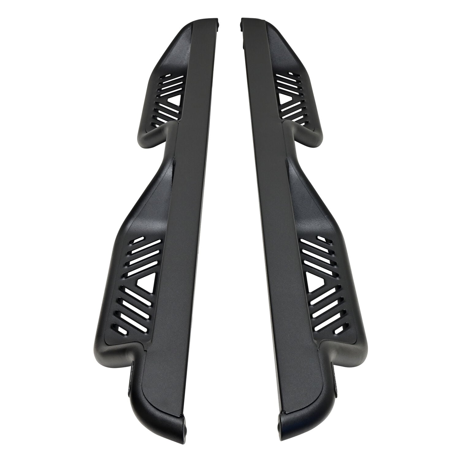The Outlaw Drop Nerf Step Bars are a stylish and rugged edition to the Westin Outlaw line of products. They provide stylish functionality at great price and are built with 1.5" mandrel bent steel tube and dual coated with an e-coat base and black textured powder-coat finish for excellent corrosion protection. The drop steps feature a 4" wide step plate with die-stamped raised treading that provide the right amount of traction for a safe transition getting in or out of the cab of your vehicle. Whether you are off-roading or simply driving around town, the Outlaw Nerf Step Bars provide a secure stepping surface for any weather conditions. Westin also has matching Outlaw front and rear bumpers for a total rugged look. This set come complete with a pair of steps, vehicle specific mounting kit, installation instructions, and is backed by Westin's 3 year warranty. Give us a call or chat in today to order Westin's Outlaw Series products!