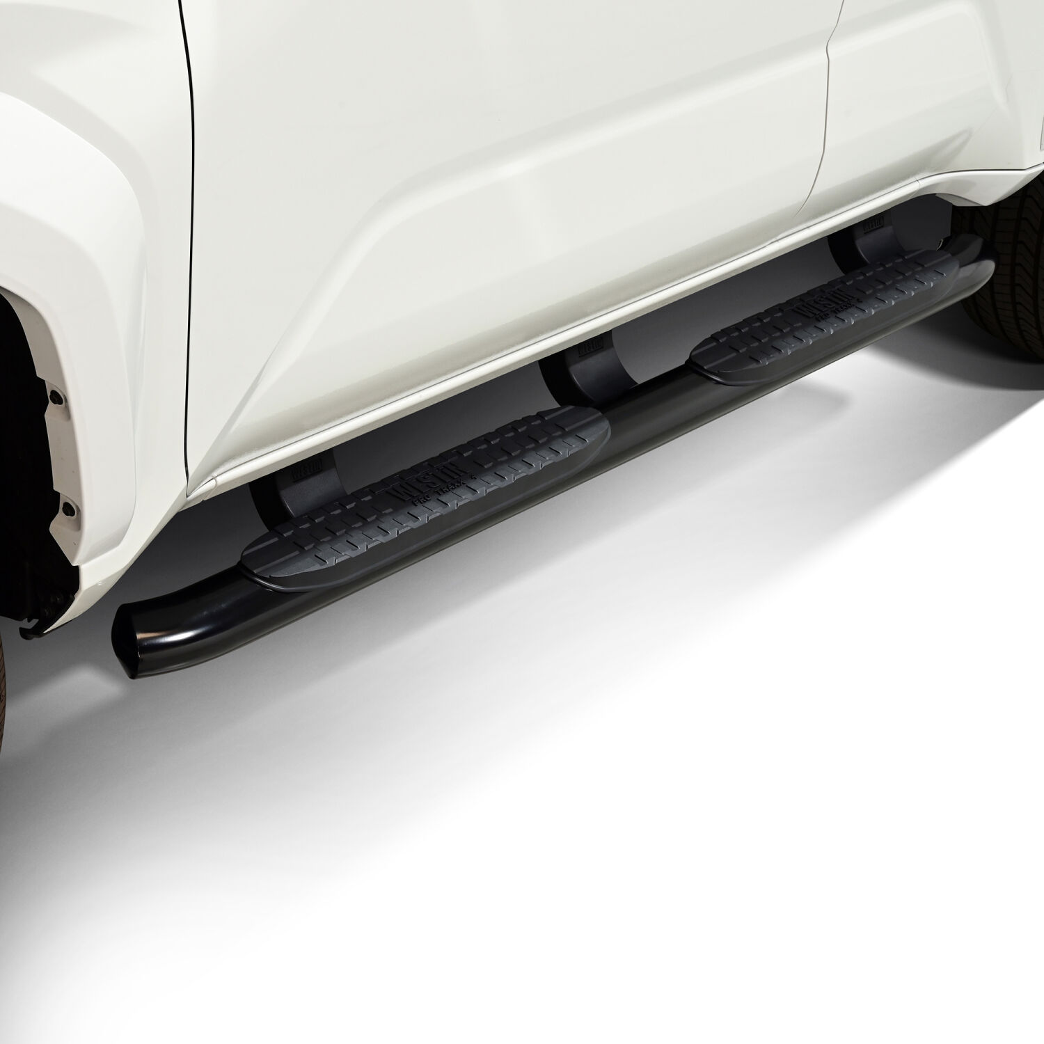 Westin Pro Traxx 4 nerf step bars feature a 4 in wide oval tube with a heavy-duty step pad that provides a wide and secure stepping surface. These bars feature 30 degree bend at each end and have seamless domed ends so there are no end-caps or exposed bolt heads. The bars are available in 2 finishes, a polished stainless steel or black powder coated steel. Key Features Robust construction: industrial-grade steel tube with heavy-duty polymer step pads that resist UV, abrasion, and impact Aesthetic and functional: smooth integration with OE styling thanks to seamless domed ends and factory-style bends  Protection: helps shield rocker panels from debris and damage  Bolt-on installation: vehicle-specific brackets, mounting hardware included; typically requires no drilling Why Choose ProTraxx 4? Blend of style and functionality—enhances your vehicle’s appearance while improving accessibility and protecting rocker panels. Versatile material options—choose polished stainless for maximum durability and style, or black powder-coated steel for a sleek, budget-friendly look. Hassle‑free install—bolt-on design with custom-fit kit makes it accessible for DIY or professional install Ideal Use For Trucks, SUVs, and Jeeps where improved cab entry is desired—especially for lifted or higher vehicles Owners looking for combination of protection and accessibility, while maintaining a clean, OE-quality look. Those wanting a durable option—stainless steel for long-lasting style, or black powder coat for cost-effective performance. Care & Maintenance Regular waxing is recommended (avoid wax or polish with abrasives)  Stainless steel models: clean with mild soap and water; use stainless steel polish to buff out minor scratches Warranty Polished stainless steel versions come with a lifetime warranty against defects in materials, workmanship, or finish under normal use. Excludes damage from road hazards, misuse, improper installation, etc. Black powder-coated versions have a 3-year warranty under similar terms Warranty covers repair or replacement of the product only—does not cover labor, shipping, or related costs. Proof of purchase and returning the defective item are required