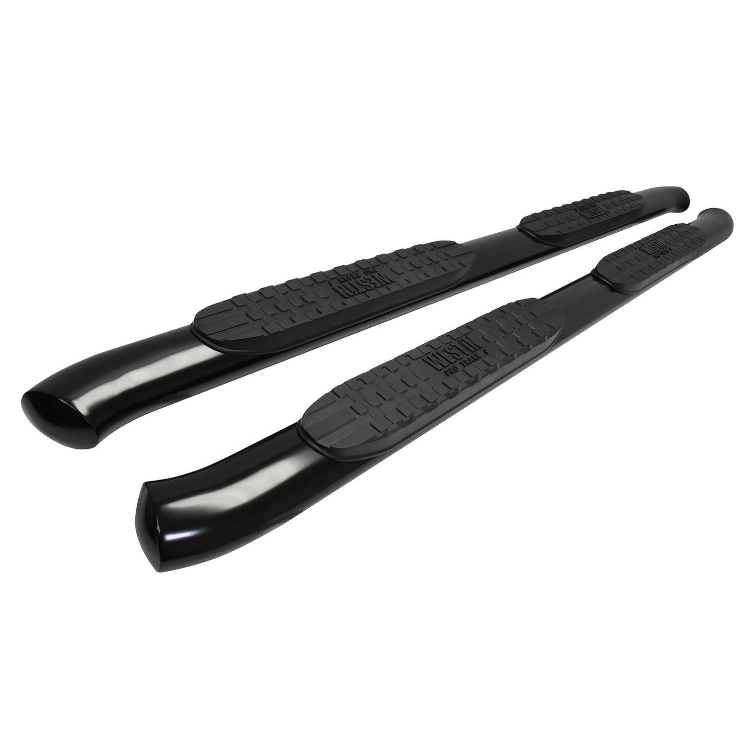 Westin Pro Traxx 4 nerf step bars feature a 4 in wide oval tube with a heavy-duty step pad that provides a wide and secure stepping surface. These bars feature 30 degree bend at each end and have seamless domed ends so there are no end-caps or exposed bolt heads. The bars are available in 2 finishes, a polished stainless steel or black powder coated steel.