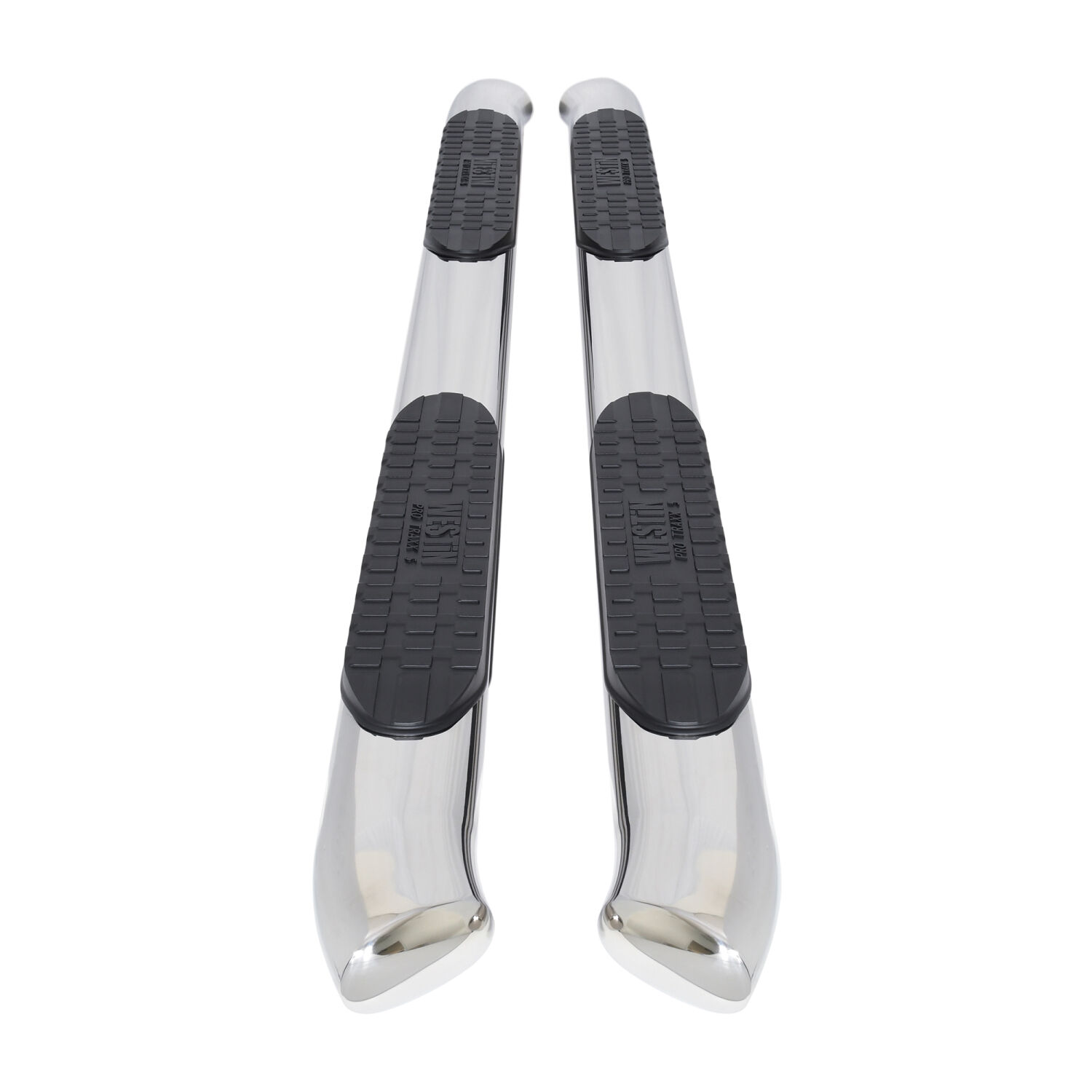 The ProTraxx 5 Cab‑Length Step Bars are crafted using 5″ oval steel tubing with 30° OE‑style bends and seamless, fully welded domed ends, giving a refined, high‑quality appearance with no exposed bolt heads or end caps. They feature wide, injection‑molded polymer step pads for a secure, slip‑resistant surface. Key Features 5″ oval tube construction with 4″ step pad width for stability when stepping in or out of the vehicle Welded domed ends and 30° bends, delivering both function and an OE-style aesthetic Rocker panel protection, helping guard your vehicle’s lower sides from road debris Bolt-on, no-drill installation, with vehicle‑specific mounting kit included for hassle‑free setup Finish options: polished stainless steel for longevity and shine; or black powder-coated steel for a durable, cost-effective choice Why Choose ProTraxx 5? Excellent blend of form and function—sleek styling combined with rugged build quality. Wide stepping surface + drainage channels (deep paved waterways) make stepping in easier and safer while keeping the surface dry Material choices suit your preference: polished stainless steel for a long-lasting premium look, or powder-coated steel for a tough, budget-friendly option. Simple, no-drill installation makes them ideal for both DIY enthusiasts and professionals. Ideal Uses Trucks, SUVs, or Jeeps with higher ride heights or cab access challenges. Owners who want to boost entry/exit safety, protect rocker panels, and enhance the vehicle’s overall appearance. Perfect for driver and passenger comfort, as well as for better access to the truck bed in wheel-to-wheel setups (though here you're referencing cab-length, not full wheel-to-wheel) Care & Maintenance Regular cleaning with mild soap and water. Polished stainless steel models can be maintained with stainless polish to keep them bright and remove minor scratches. Powder-coated steel should be checked for chips; touch-up paint helps prevent rust. Avoid abrasive cleaners or harsh tools that could damage finishes. Warranty Stainless steel models come with a lifetime warranty, covering defects in materials, workmanship, or finish under normal use Black powder-coated models carry a 3-year warranty under similar terms In general, Westin covers defects by repairing or replacing the product, but does not include labor, shipping, or incidental costs