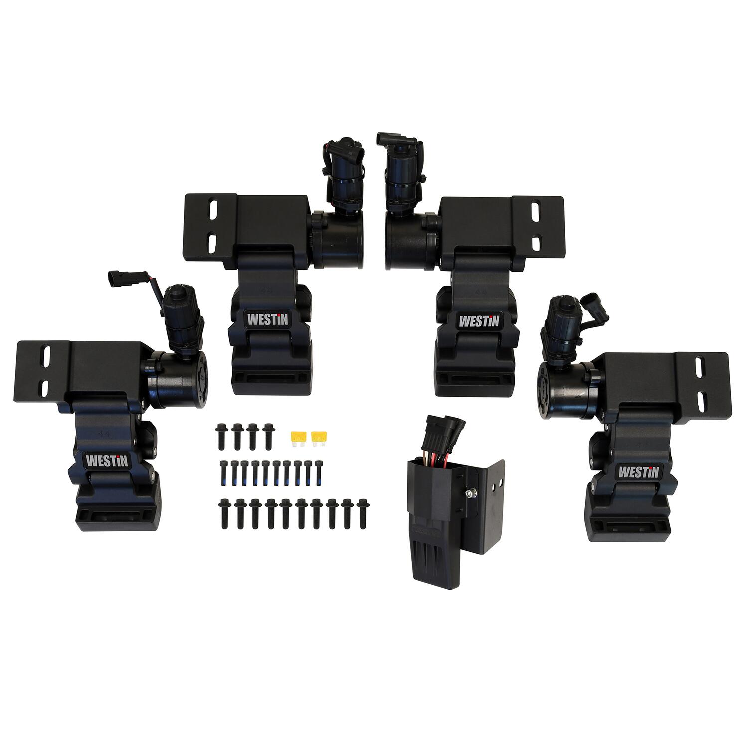 Introducing the all-new Westin Pro-e Running Boards, a superior upgrade that combines the functionality and appearance of your Truck, Bronco, Jeep or SUV. The Pro-e Running Boards are designed with a practical feature that automatically deploys when the vehicle's door is opened. This allows for easy entry and exit. When the door is closed, the running boards smoothly retract, seamlessly integrating with the vehicle's body and maintaining its sleek appearance. Equipped with two waterproof IP68 rated motors per side, these running boards are engineered for durability and reliability in any weather condition. The integrated LED lights illuminate the 6-inch wide, durable aluminum step surface, ensuring enhanced visibility and safety. Whether it's day or night, you can confidently step onto these running boards with their impressive weight capacity of up to 300 lbs. per side. The Pro-e Running Boards are constructed from corrosion-resistant aluminum and finished with a durable textured black powder coat. The included vehicle-specific mounting brackets and hardware guarantee a seamless installation process, ensuring a perfect fit for your vehicle.