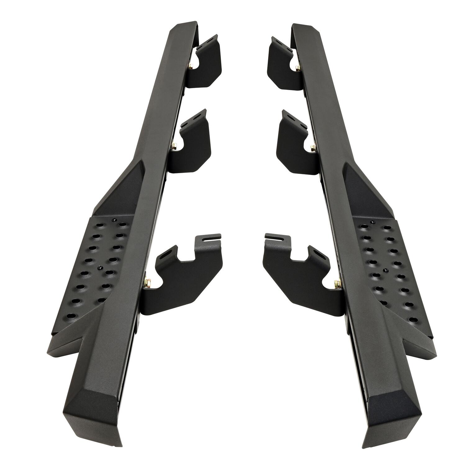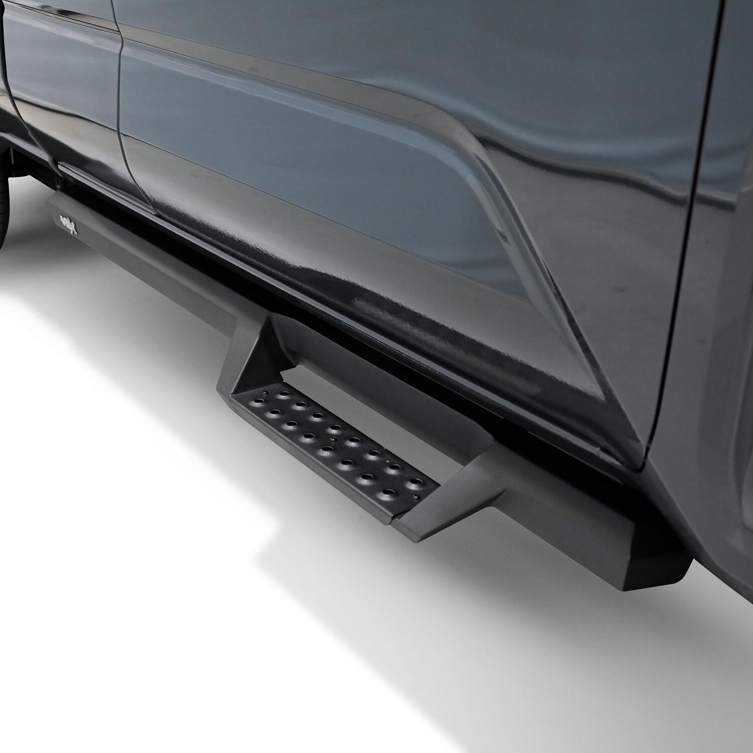 Westin HDX Drop Steps provide the rugged look and function that truck owners need and want. The steps are a solid 1-piece steel construction and heavy duty punch plates creating high traction step areas. The HDX Drop Steps also feature Westin's notched bar design which allows for more than 2 inches of additional toe/heel placement over other steps. These steps come in a textured black finish. The HDX Drop Steps have vehicle specific applications and include a vehicle specific mount kit, installation hardware and instructions. Westin backs these steps with a 3 year warranty.