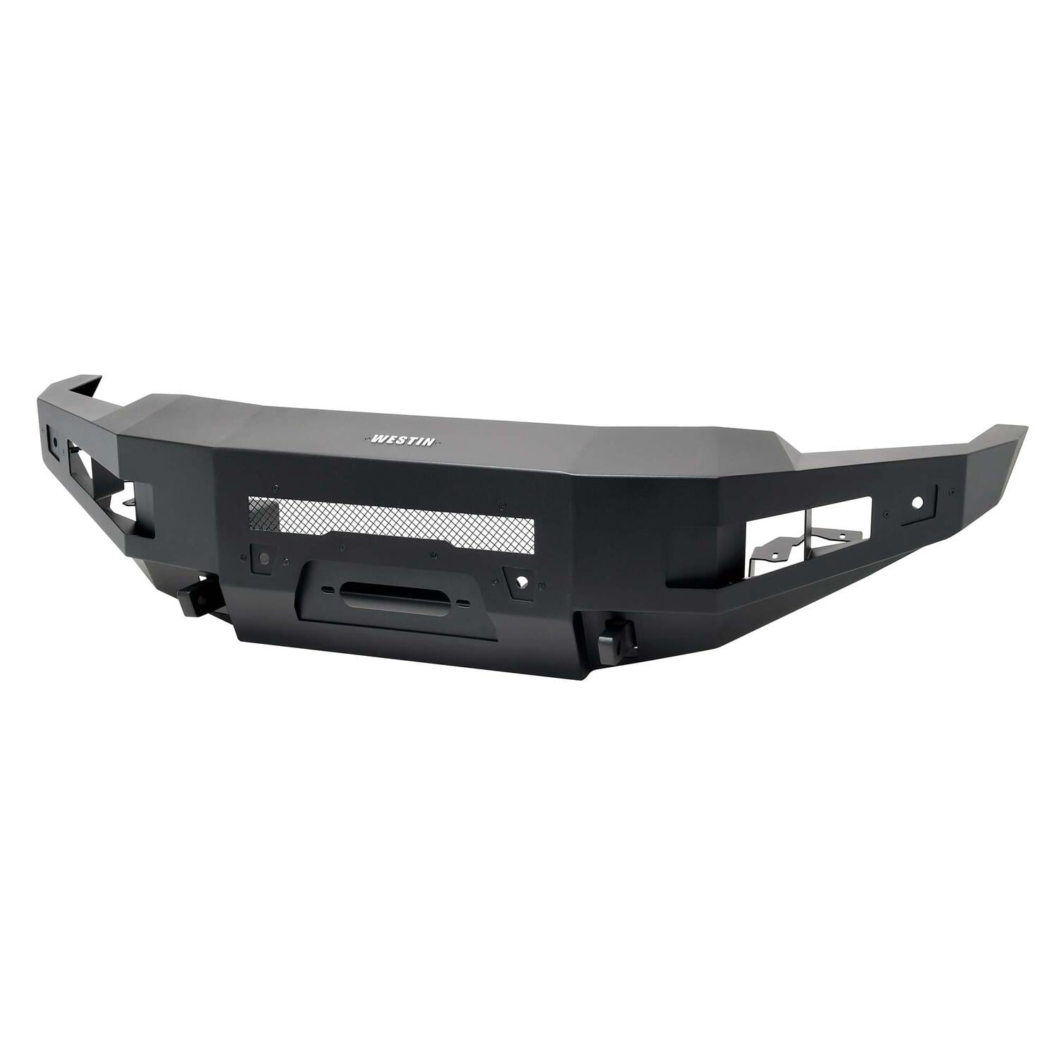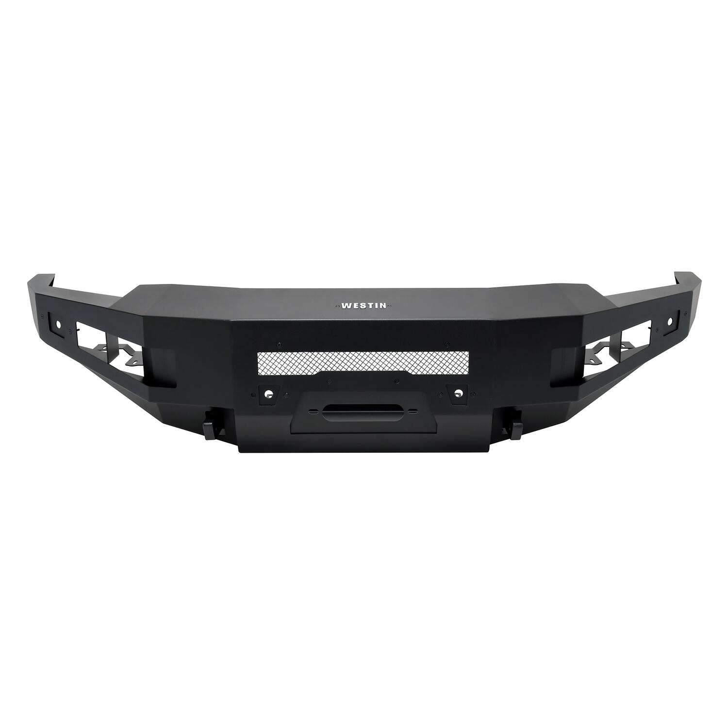 Pro-Series Mid Width Front Bumper The Pro-Series Mid Width Front Bumper from Westin has a great looking and highly functional design. The distinctive low-profile bumper design retains the OEM bumper factory styling, while adding a winch capable platform engineered to accommodate 8,000-12,000 lb. synthetic rope winches with a hawse fairlead. The recessed hawse fairlead helps to achieve proper approach angles. It features large winch area access holes for easier operation, and provides two additional recovery/mounting points. To give you even more visibility, the Pro-Series fits an optional single row 20” LED light bar (sold separately). It is also available with your choice of two (2) attractive Bull Bar Styles (round and angular)(Toyota 4Runner only), that provides added grille protection. This heavy-duty bumper upgrade is built to last, constructed of a stout 10-gauge steel outer shell, with a beefy heavy-duty 4-gauge center section for easy installation. This design features a durable textured black powder coat finish with an e-coated base coat, providing long lasting corrosion protection from the elements, and is backed by a 3-year warranty. The Pro-Series Wid Width Front Bumper from Westin comes complete with all mounting brackets and hardware. Pro-Series Front Bumper The Pro-Series Front Bumper from Westin is an attractive, heavy duty, "winch capable" upgrade. Keep your OEM features while achieving looks and functionality. Built for adventure, this bumper is ready for anything standing in its way. The Pro-Series was engineered to improve both approach angles and ground clearance for enhanced off-road capabilities. Constructed with a 10 gauge steel bumper shell the Pro-Series is designed for maximum strength and durability. With a heavy duty 1/4" steel center section capable of holding a 12K lbs. winch and welded recovery mounting points, this is all the reassurance you need. Keeping safety in mind, this bumper has provisions for the factory proximity sensors while housing either a single, or double-row 20" LED light bar (sold separately) for those late night excursions. Finished in a 2-stage treatment, the durable E-coat and black textured finish is surely built to last. Includes all the necessary mounting hardware for a "hassle free installation". Backed by a 3-year warranty Westin has you covered. Pro Series is available for Ford, Chevy, Ram and Toyota applications. Add the matching Pro-Series Rear bumper to complete the look and take your truck to the next level.