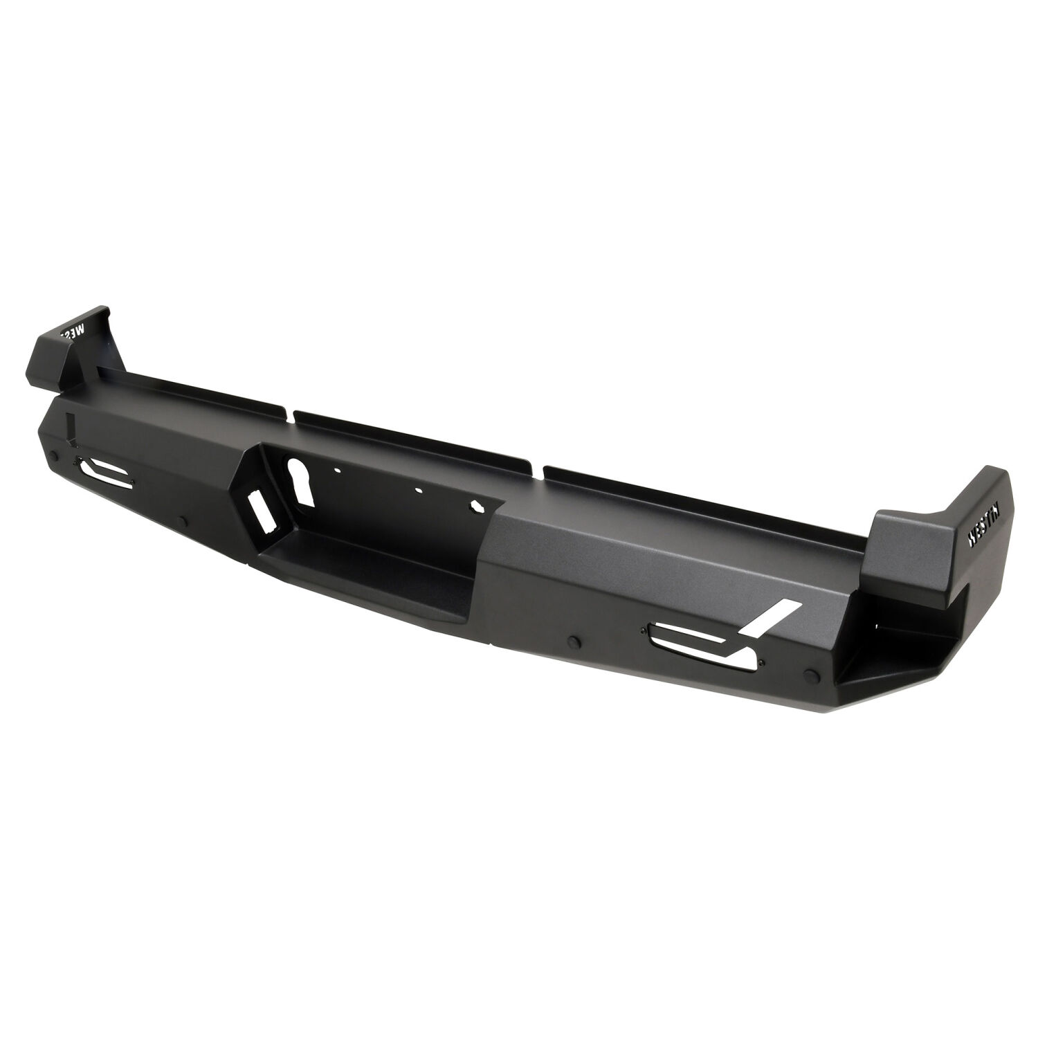 "High and Tight" best describes the great looking new Pro-Series Rear Bumpers from Westin. This all new "off road style" rear bumper features a light weight, slim, one-piece design, adding a modern, aggressive look to your truck. Built to improve ground clearance and departure angles when driving in more rugged terrain. The Pro-Series Rear Bumper is fully compatible for OEM parking sensors, hitch, and blind spot monitors. It also includes two LED license plate lights and can accommodate LED back up lights (sold separately). Featuring a textured black finish with an e-coated base coat, providing long lasting corrosion protection from the elements with easy bolt-on installation. Just add the original Pro-Mod Front Bumper, and your transformation from stock to custom is complete.